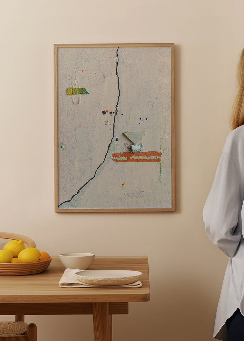 Das Passepartout ist eine weiße, matte Pappe, die das Poster umgibt, um es vor Methacrylat zu schützen, und die auch die Ausdruckskraft der Arbeit verstärkt und Details hervorhebt.