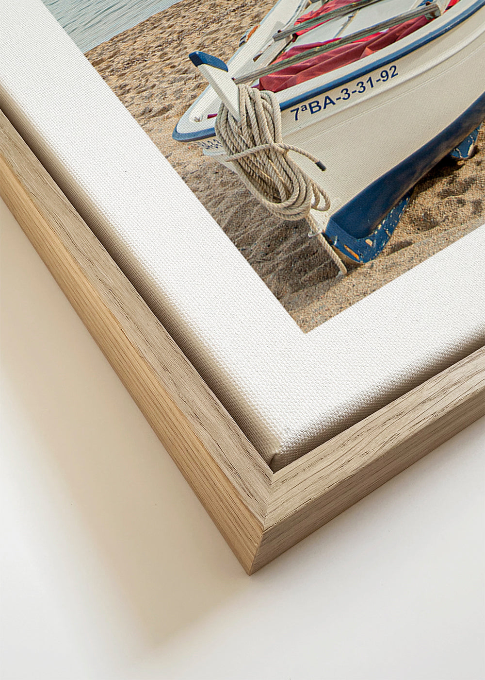 Alle unsere Rahmen werden in Spanien hergestellt. Die weißen, schwarzen und Eichenrahmen sind aus Ayous-Holz gefertigt, und die Eichenrahmen sind mit Eiche furniert, während die metallischen Rahmen aus Aluminium sind.