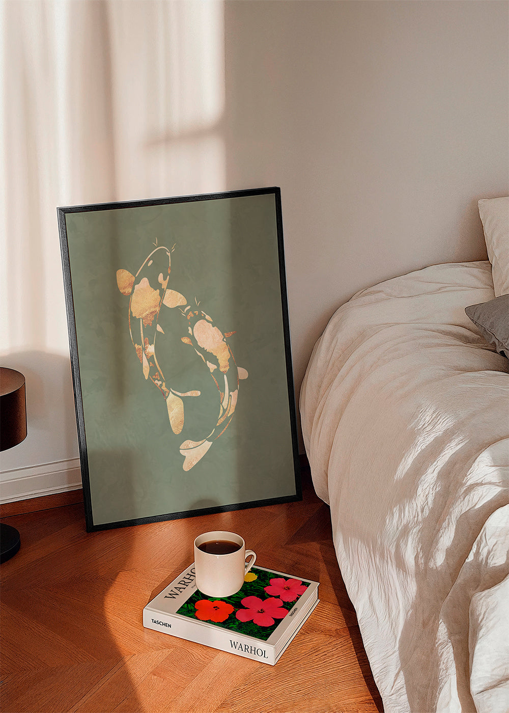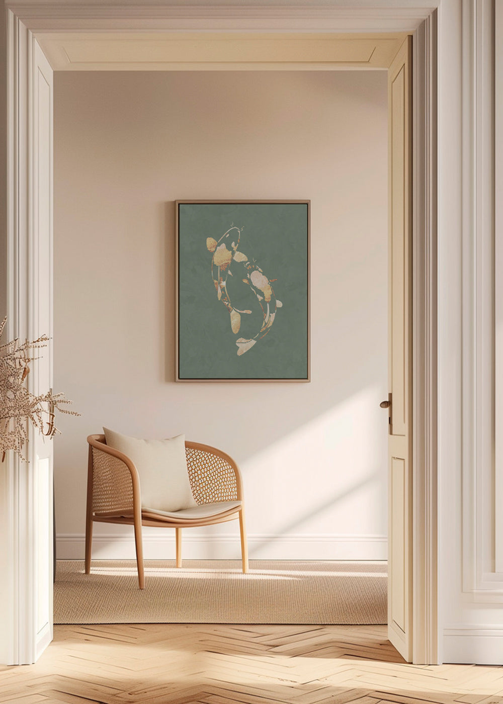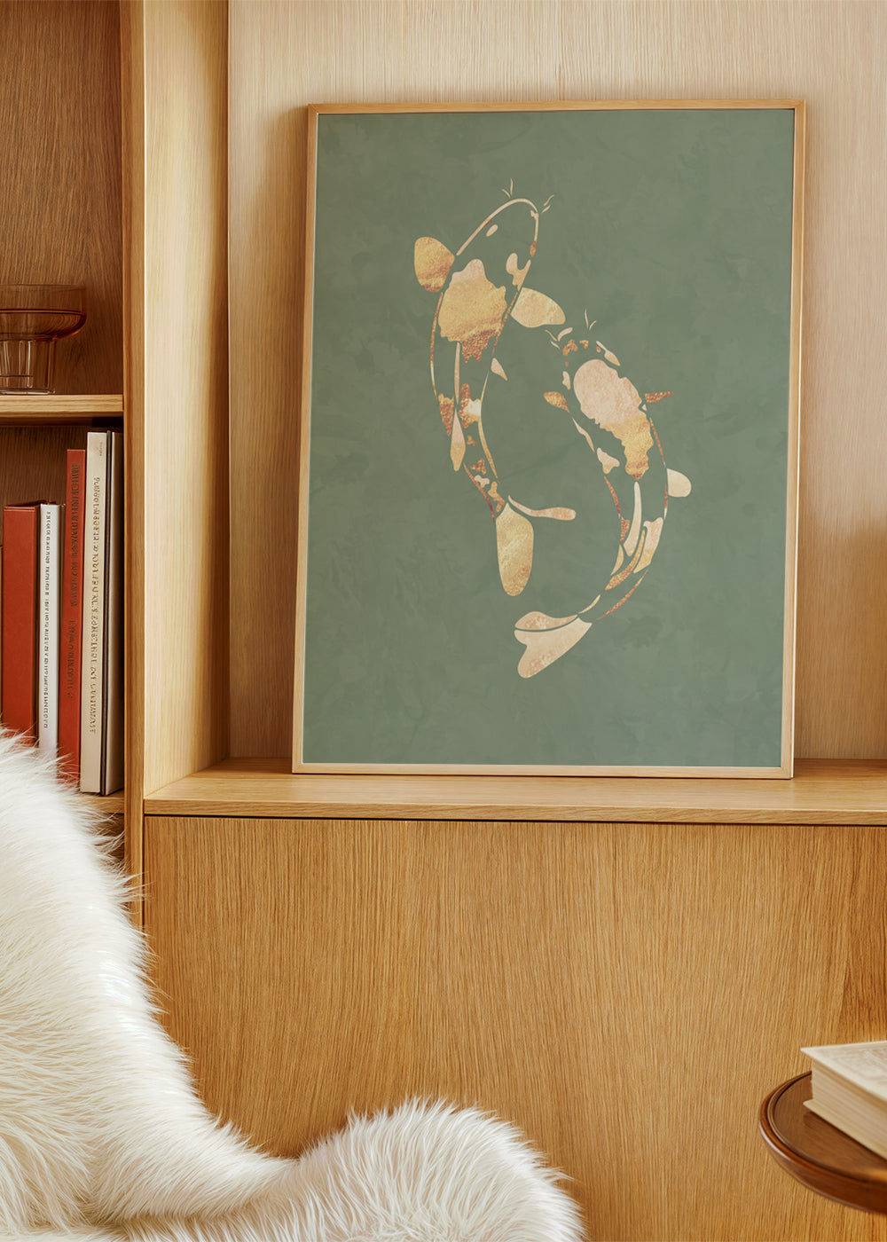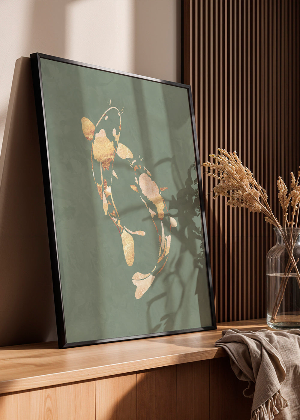 Bild für Schlafzimmer Gold Koi Fish sage green 1