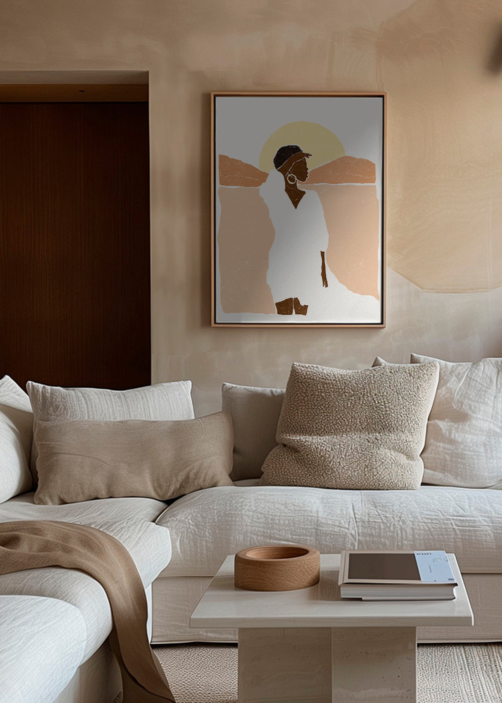 Ein Poster aus der Kollektion wandbild mit frau, des Kreativschöpfers Yuyu Pont, in den Farbtönen mehrfarbig, und im Format vertikal. Die Ruhe und Freiheit die Wandbilder mit Landschaften verströmen ist einzigartig. Mache aus deiner Wand ein Bild für die Götter.