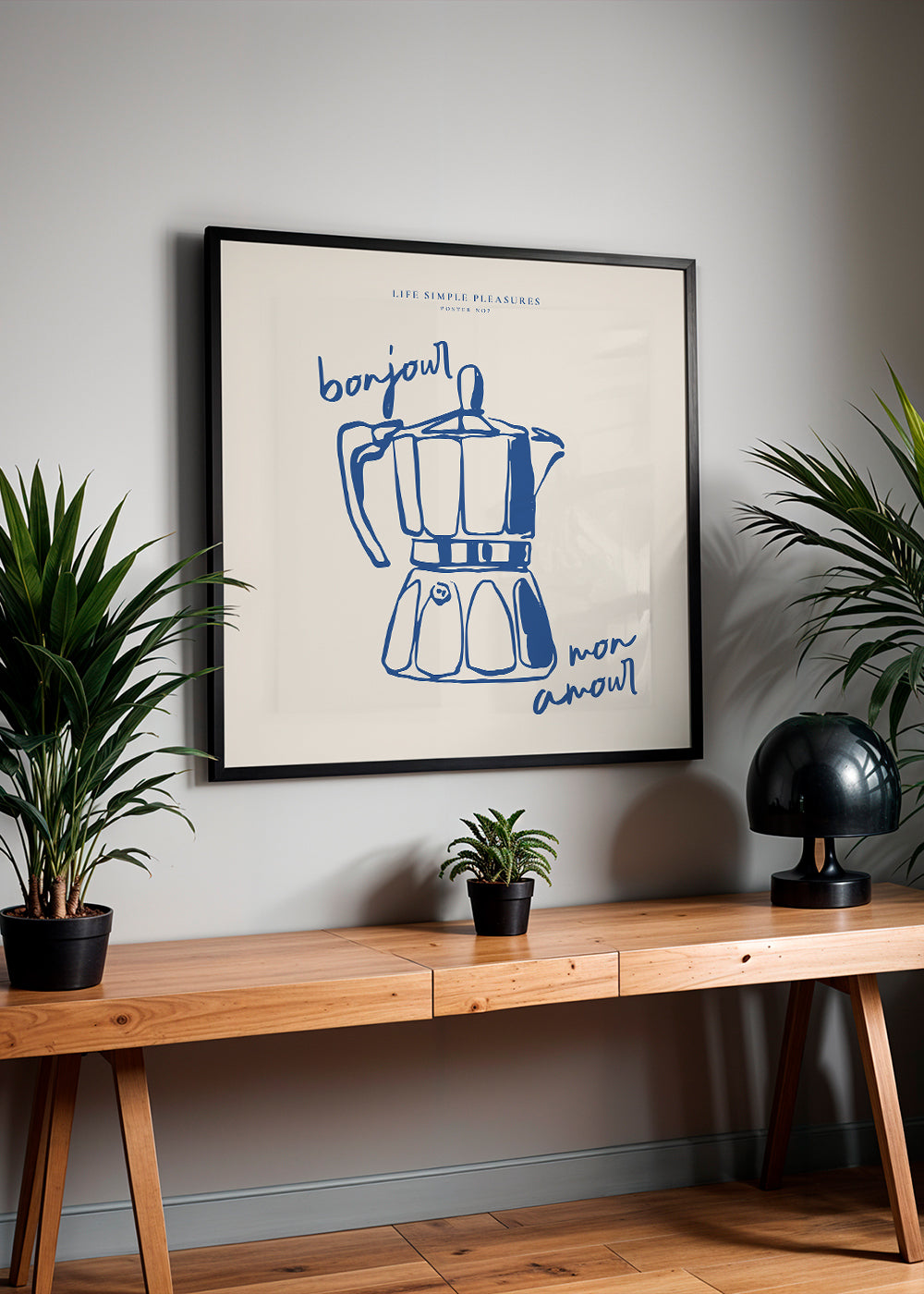 Ein Wandbild aus unserer Bilderauswahl kaffee-poster und bilder mit kaffee-motiven, designed von Seven Wall Art, mit Schattierungen blau. Das perfekte Design für Hobbyköche. Dekoriere deine Küche mit Wandbildern. Verschönere deine Inneneinrichtung mit Kunst.