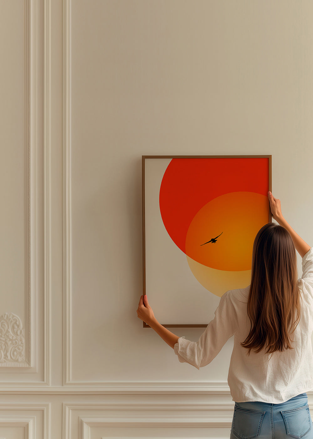 Wir arbeiten mit Massivholz- und Aluminiumrahmen. Alle gerahmten Produkte werden bereits montiert und fertig zum Aufhängen geliefert. Die Frontabdeckung besteht aus transparentem Acrylglas.
