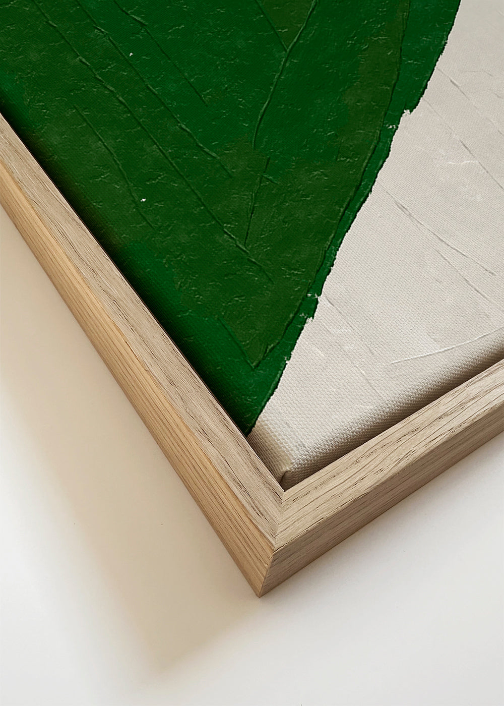 Jede Leinwand wird von Hand auf einen Holzspannrahmen gespannt. Die Tiefe beträgt 3 cm bei ungerahmten Leinwänden und 4 cm bei gerahmten Leinwänden.