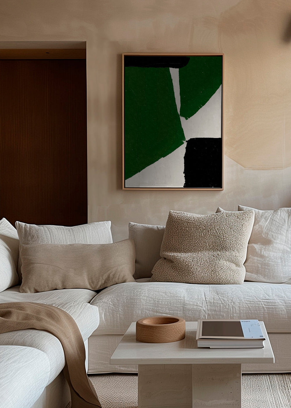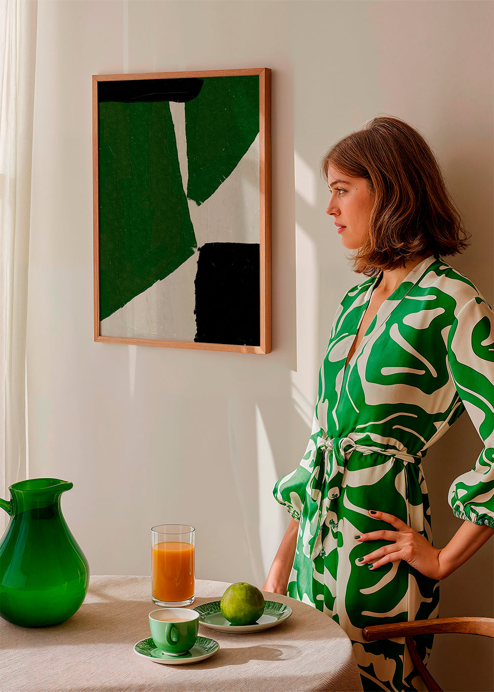 Schönes Wandbild gehört zum Thema geometrische bilder, geschaffen von 1x, mit Nuancen grün, und im Format vertikal. Der Kunstdruck mit abstrakten Formen lässt sich hervorragend mit geometrischen Formen und abstrakter Kunst kombinieren. Verschönere deine Wände mit Wandbilder-Deko.