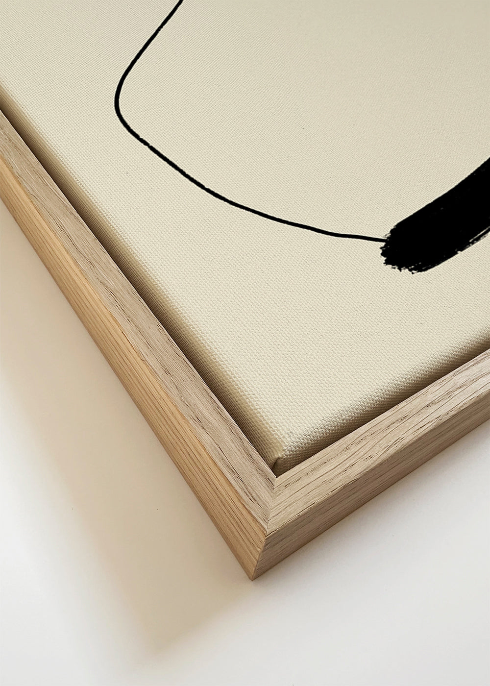 Jede Leinwand wird von Hand auf einen Holzspannrahmen gespannt. Die Tiefe beträgt 3 cm bei ungerahmten Leinwänden und 4 cm bei gerahmten Leinwänden.