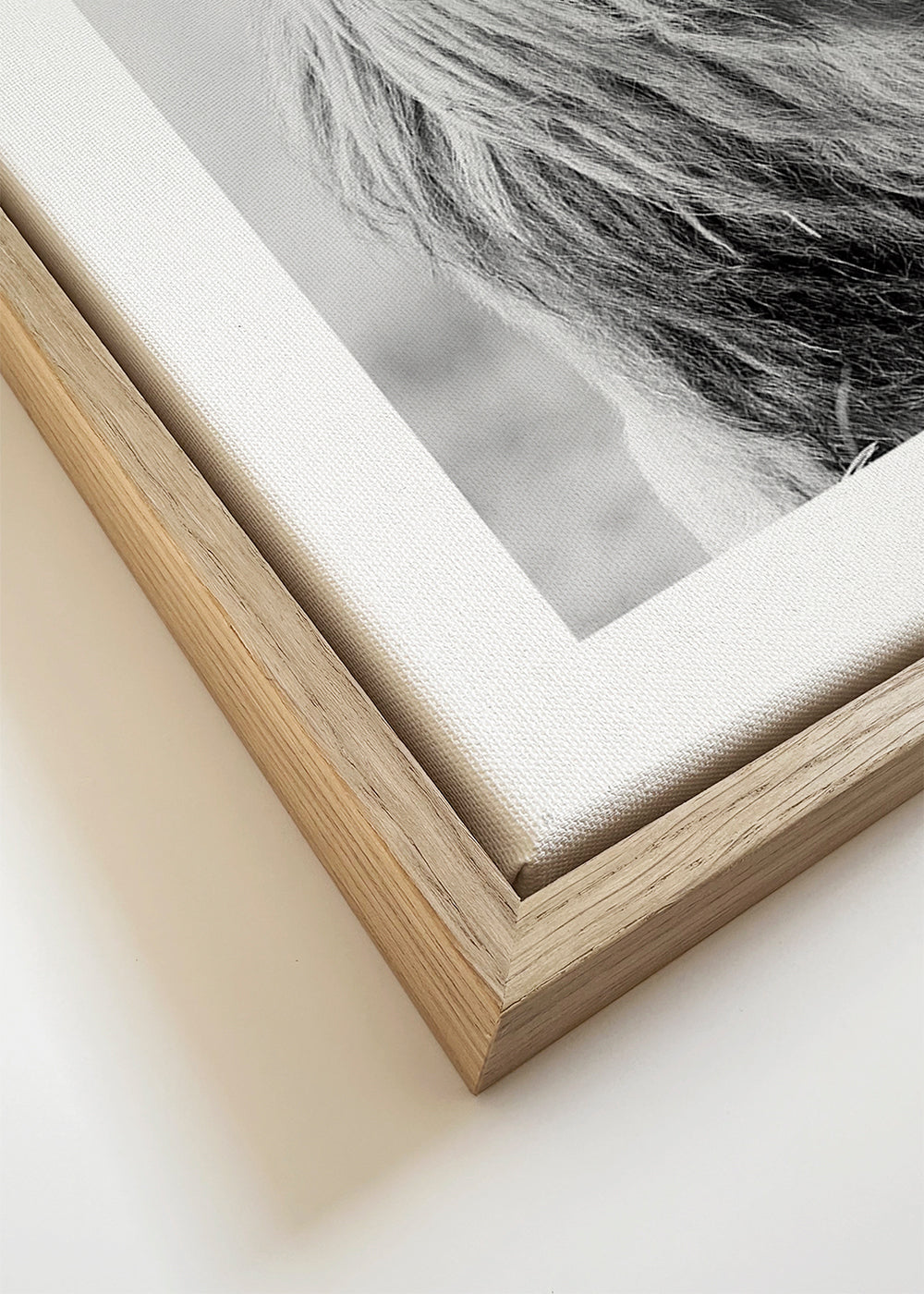 Wenn Sie die Passepartout-Option wählen, fügen wir die weiße matte Platte dem Rahmen hinzu und reduzieren das Design der Arbeit. Wählen Sie beispielsweise ein Druckformat 50x70 cm, mit eichenfarbenem Rahmen und Passepartout, reduzieren wir das Design des Druckes auf das bisherige Format (40x50cm). So passt es sich perfekt an das Innenfenster des Passepartouts an.