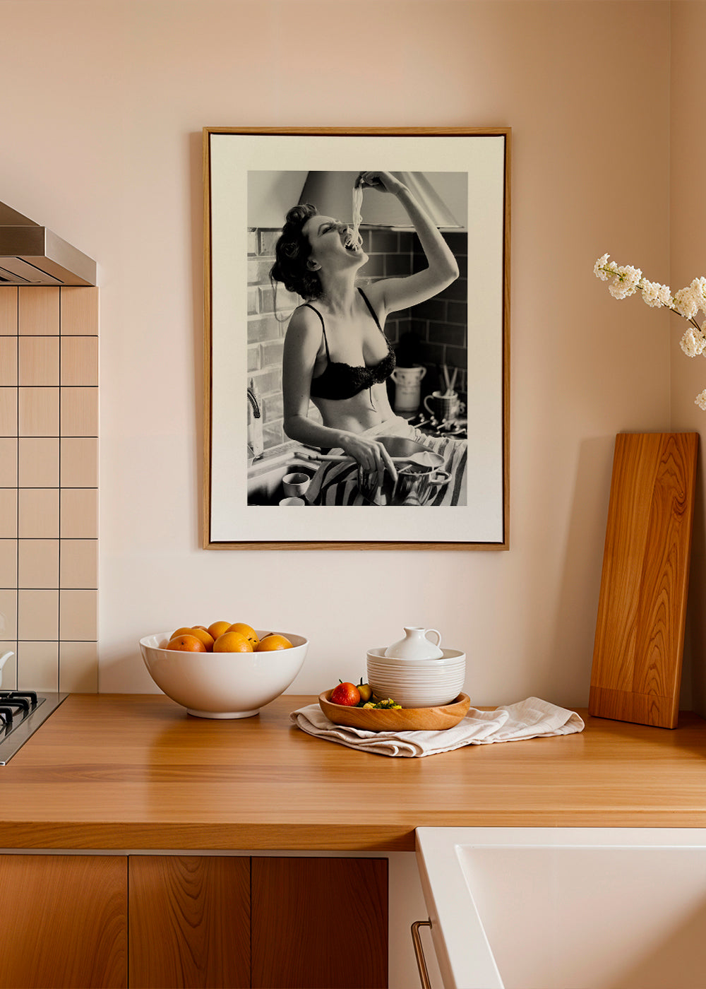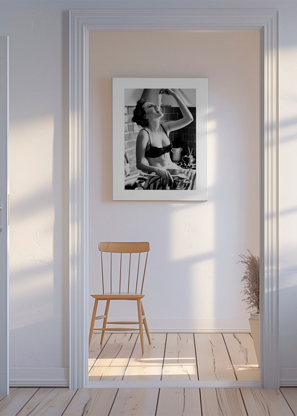 Schönes Kunstwerk aus unserer Kollektion von wandbild mit frau, Farbtönen Schwarz-weiß, und geeignet für Bildpositionen Vertikal. Dekoration in Schwarz-Weiß verleiht jeder Inneneinrichtung besondere Eleganz. Richte deine Wohnung mit Kunst ein.