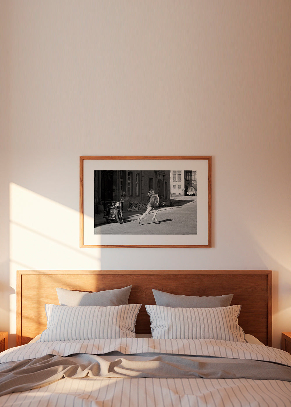 Wir arbeiten mit Massivholz- und Aluminiumrahmen. Alle gerahmten Produkte werden bereits montiert und fertig zum Aufhängen geliefert. Die Frontabdeckung besteht aus transparentem Acrylglas.