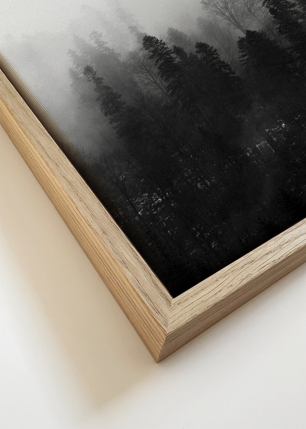 Alle unsere Rahmen werden in Spanien hergestellt. Die weißen, schwarzen und Eichenrahmen sind aus Ayous-Holz gefertigt, und die Eichenrahmen sind mit Eiche furniert, während die metallischen Rahmen aus Aluminium sind.