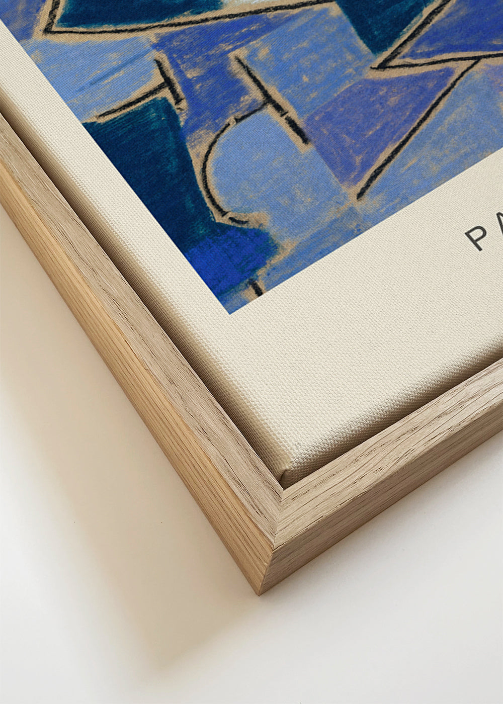 Wenn Sie die Passepartout-Option wählen, fügen wir die weiße matte Platte dem Rahmen hinzu und reduzieren das Design der Arbeit. Wählen Sie beispielsweise ein Druckformat 50x70 cm, mit eichenfarbenem Rahmen und Passepartout, reduzieren wir das Design des Druckes auf das bisherige Format (40x50cm). So passt es sich perfekt an das Innenfenster des Passepartouts an.