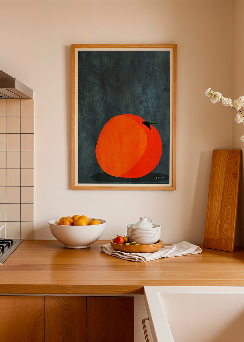 Ein Kunstwerk aus der Kollektion retro-poster und vintage-wandbilder, kreiert von Bo Anderson, mit Farbtönen orange, und für die Bildpositionen vertikal. Verleihe deiner Inneneinrichtung mit diesem Wandbild im Retro-Style, in Kombination mit anderen, einen schönen Vintage-Touch. Dekoriere die Wände deiner Wohnung mit Wandbildern.