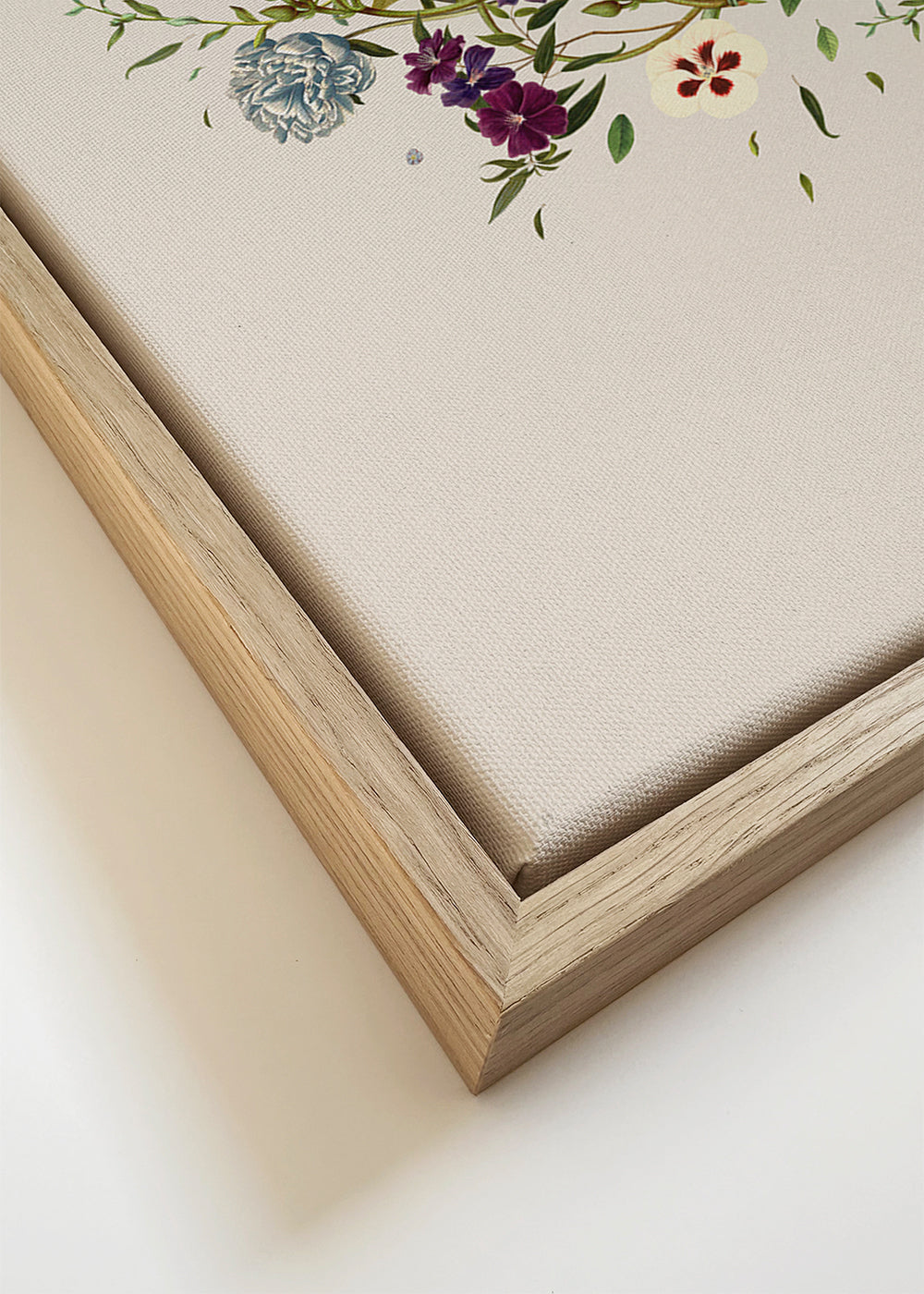 Alle unsere Rahmen werden in Spanien hergestellt. Die weißen, schwarzen und Eichenrahmen sind aus Ayous-Holz gefertigt, und die Eichenrahmen sind mit Eiche furniert, während die metallischen Rahmen aus Aluminium sind.