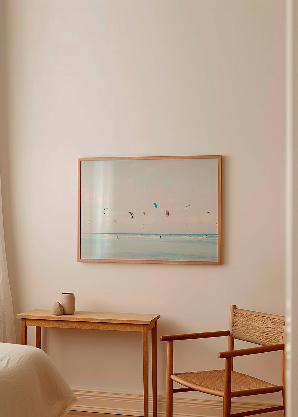Wenn Sie die Passepartout-Option wählen, fügen wir die weiße matte Platte dem Rahmen hinzu und reduzieren das Design der Arbeit. Wählen Sie beispielsweise ein Druckformat 50x70 cm, mit eichenfarbenem Rahmen und Passepartout, reduzieren wir das Design des Druckes auf das bisherige Format (40x50cm). So passt es sich perfekt an das Innenfenster des Passepartouts an.