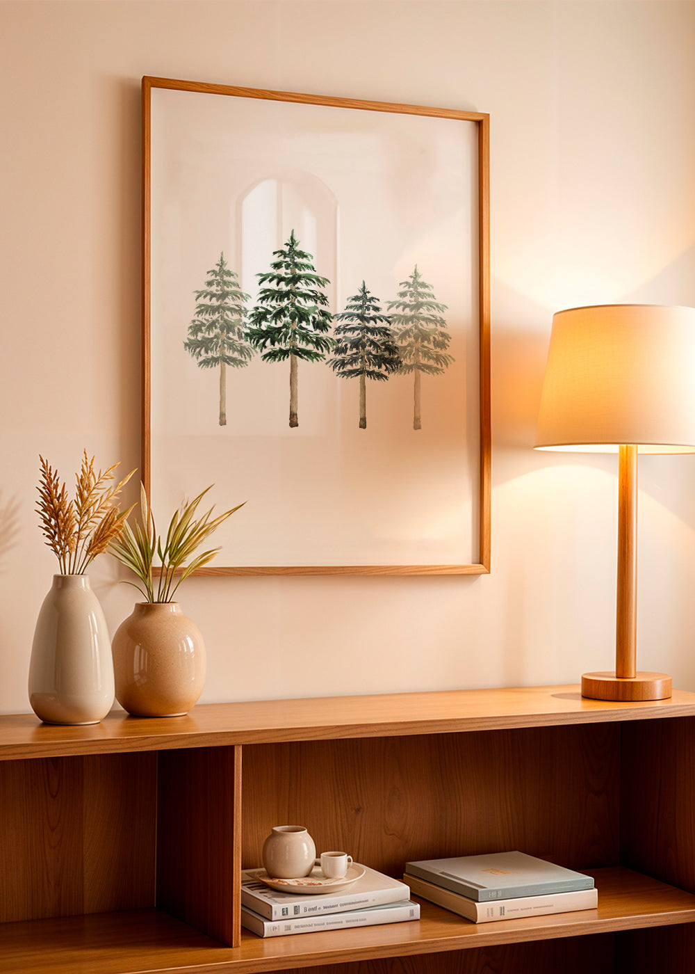 Alle unsere Rahmen werden in Spanien hergestellt. Die weißen, schwarzen und Eichenrahmen sind aus Ayous-Holz gefertigt, und die Eichenrahmen sind mit Eiche furniert, während die metallischen Rahmen aus Aluminium sind.
