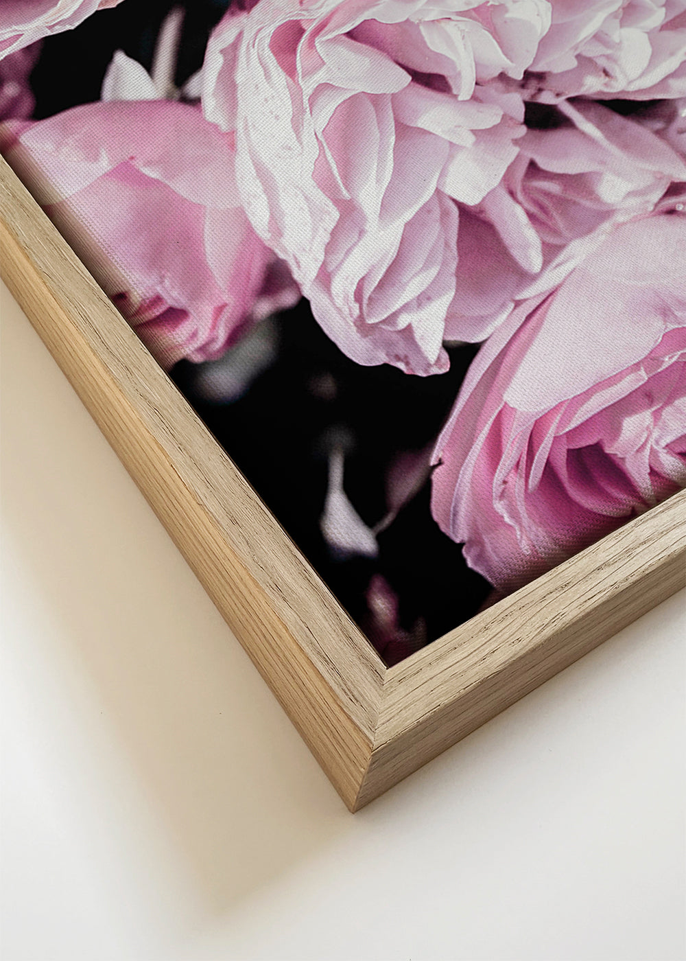 Jede Leinwand wird von Hand auf einen Holzspannrahmen gespannt. Die Tiefe beträgt 3 cm bei ungerahmten Leinwänden und 4 cm bei gerahmten Leinwänden.