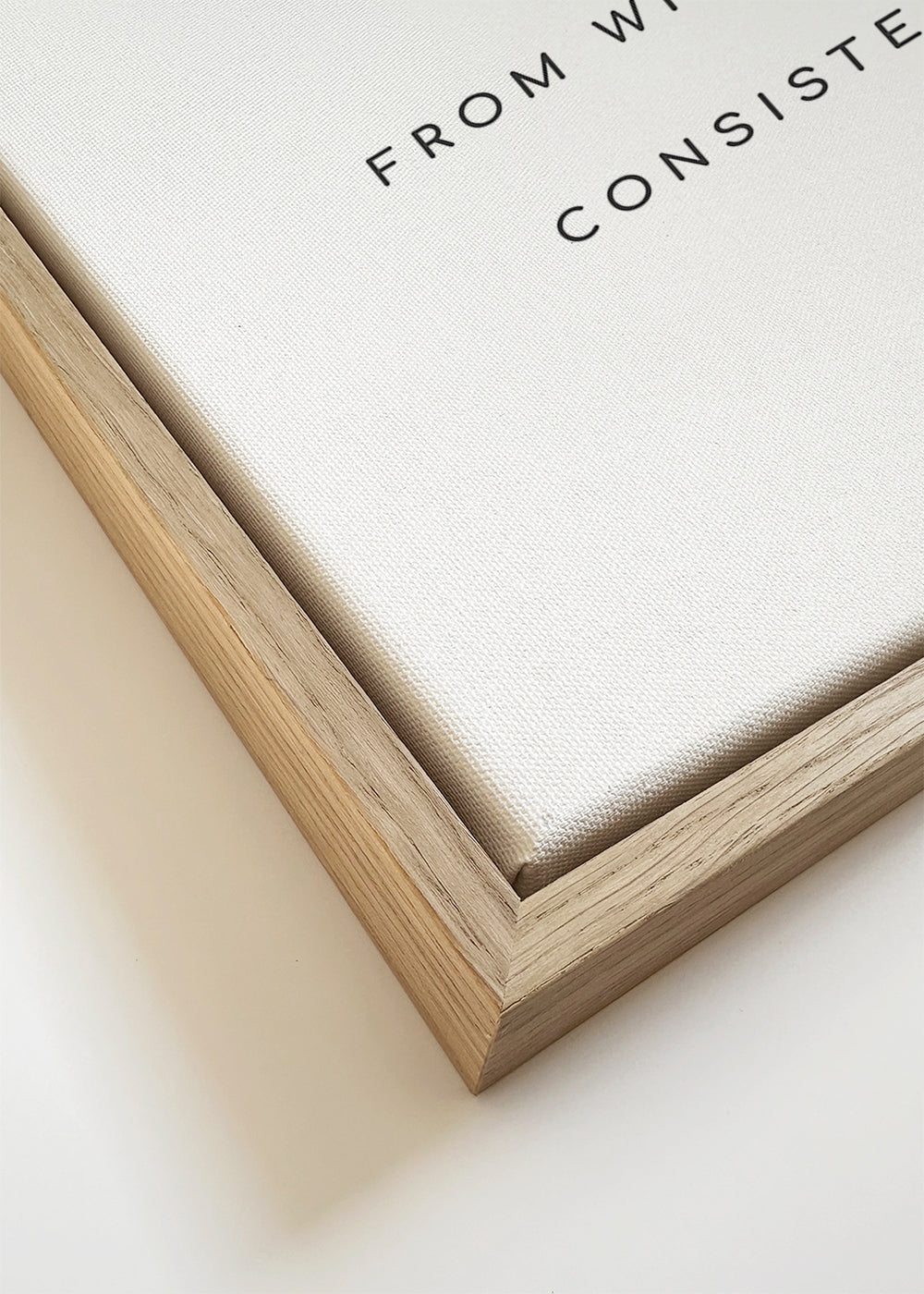 Jede Leinwand wird von Hand auf einen Holzspannrahmen gespannt. Die Tiefe beträgt 3 cm bei ungerahmten Leinwänden und 4 cm bei gerahmten Leinwänden.