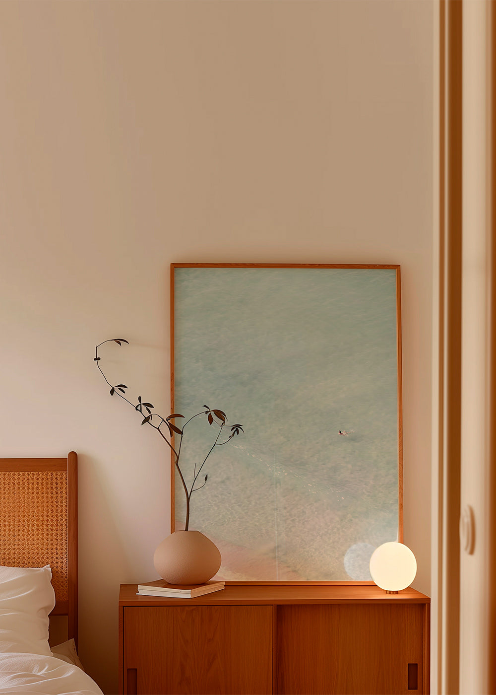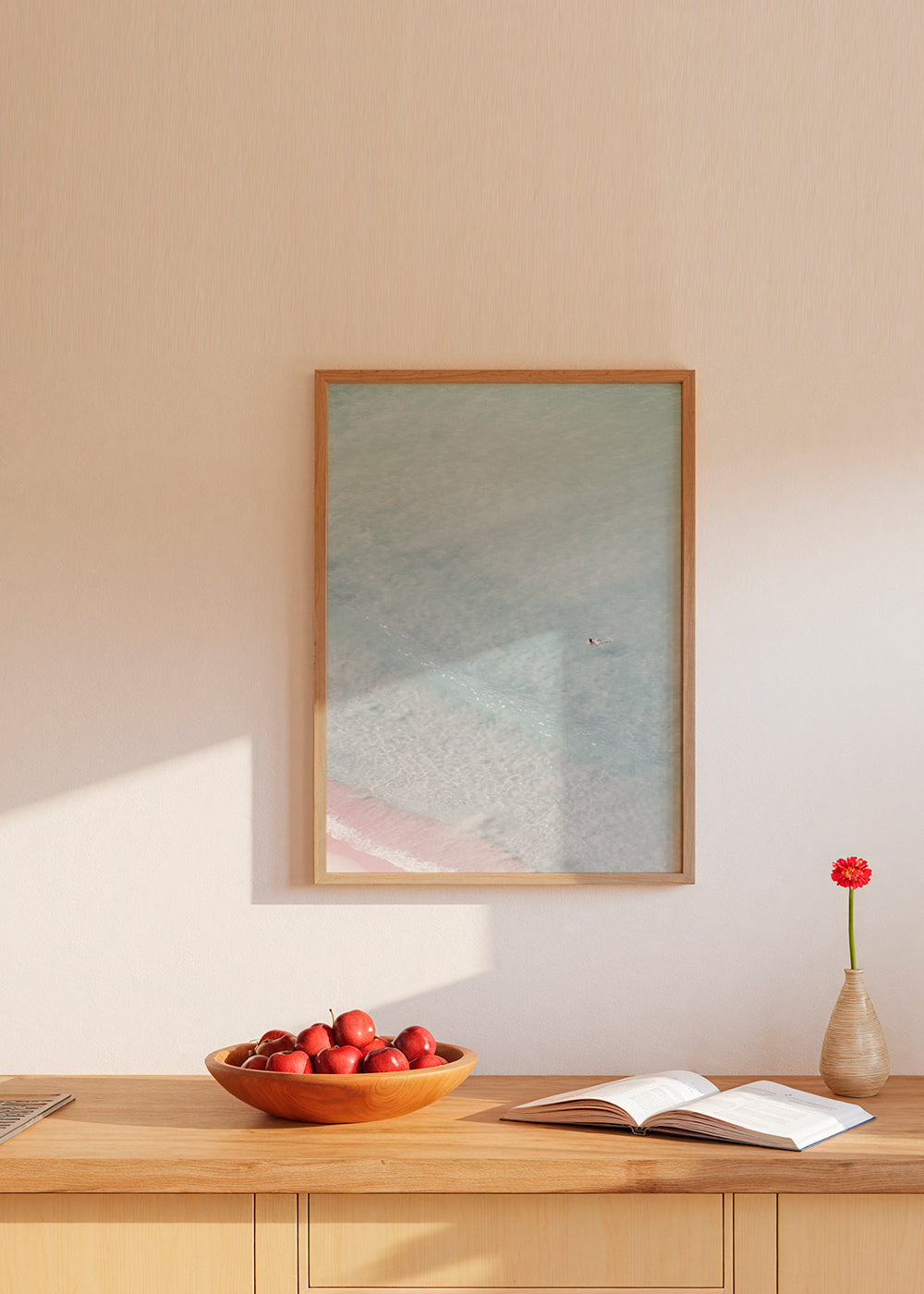 Wenn Sie die Passepartout-Option wählen, fügen wir die weiße matte Platte dem Rahmen hinzu und reduzieren das Design der Arbeit. Wählen Sie beispielsweise ein Druckformat 50x70 cm, mit eichenfarbenem Rahmen und Passepartout, reduzieren wir das Design des Druckes auf das bisherige Format (40x50cm). So passt es sich perfekt an das Innenfenster des Passepartouts an.