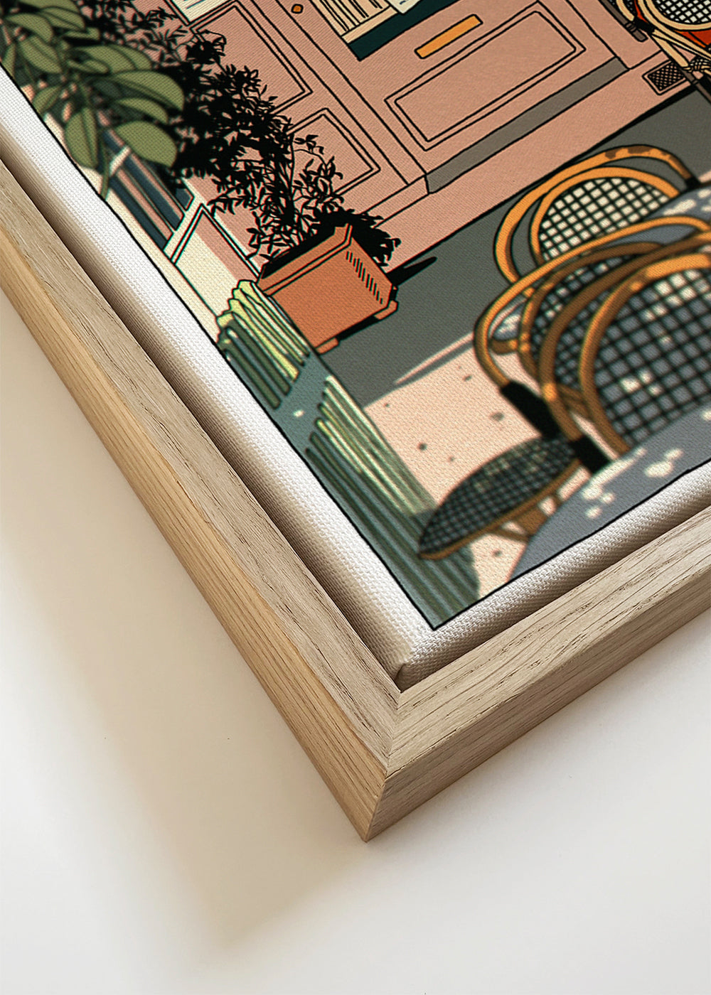 Alle unsere Rahmen werden in Spanien hergestellt. Die weißen, schwarzen und Eichenrahmen sind aus Ayous-Holz gefertigt, und die Eichenrahmen sind mit Eiche furniert, während die metallischen Rahmen aus Aluminium sind.