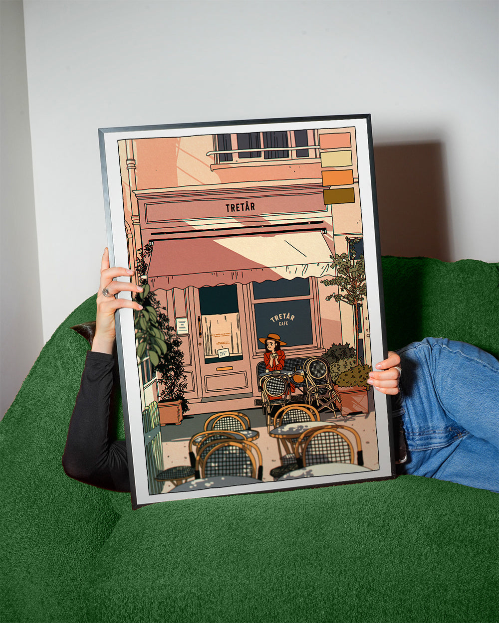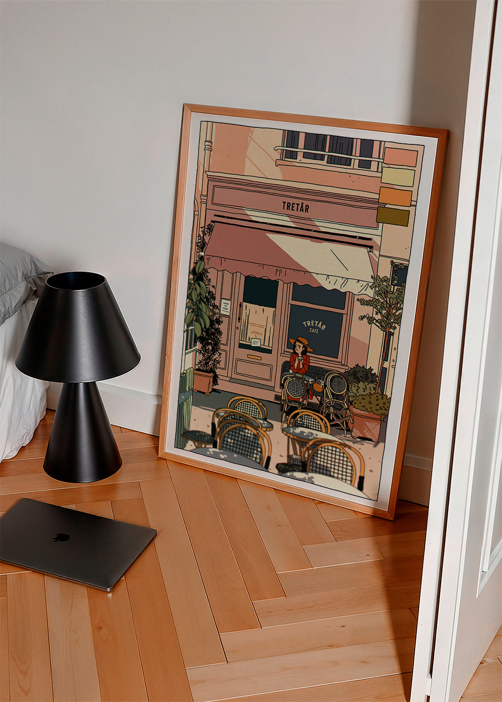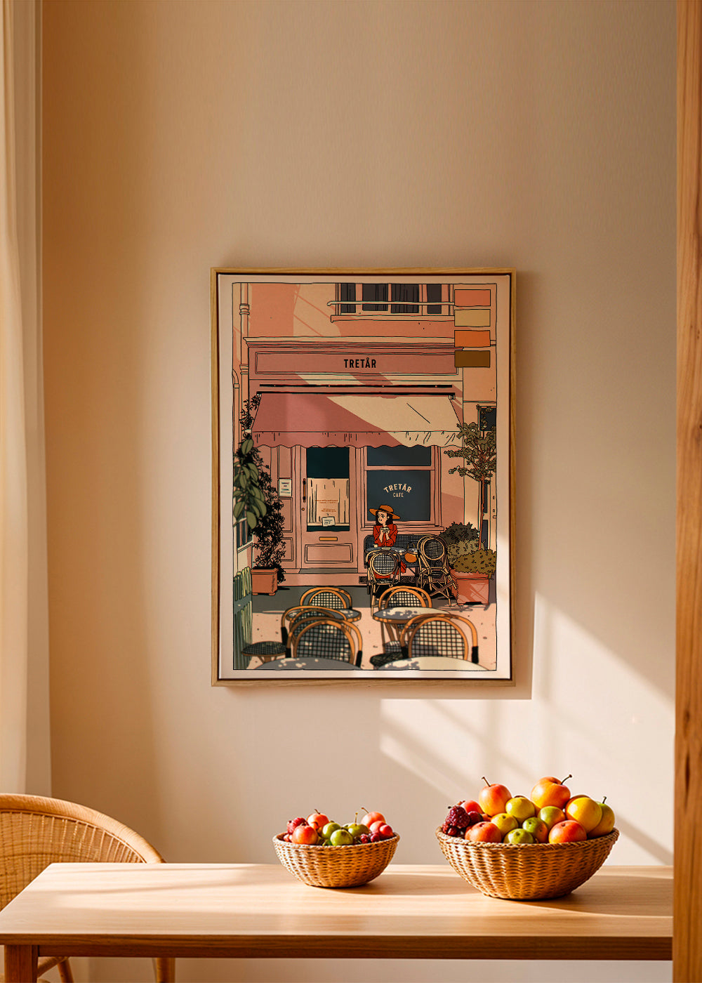 Wenn Sie die Passepartout-Option wählen, fügen wir die weiße matte Platte dem Rahmen hinzu und reduzieren das Design der Arbeit. Wählen Sie beispielsweise ein Druckformat 50x70 cm, mit eichenfarbenem Rahmen und Passepartout, reduzieren wir das Design des Druckes auf das bisherige Format (40x50cm). So passt es sich perfekt an das Innenfenster des Passepartouts an.