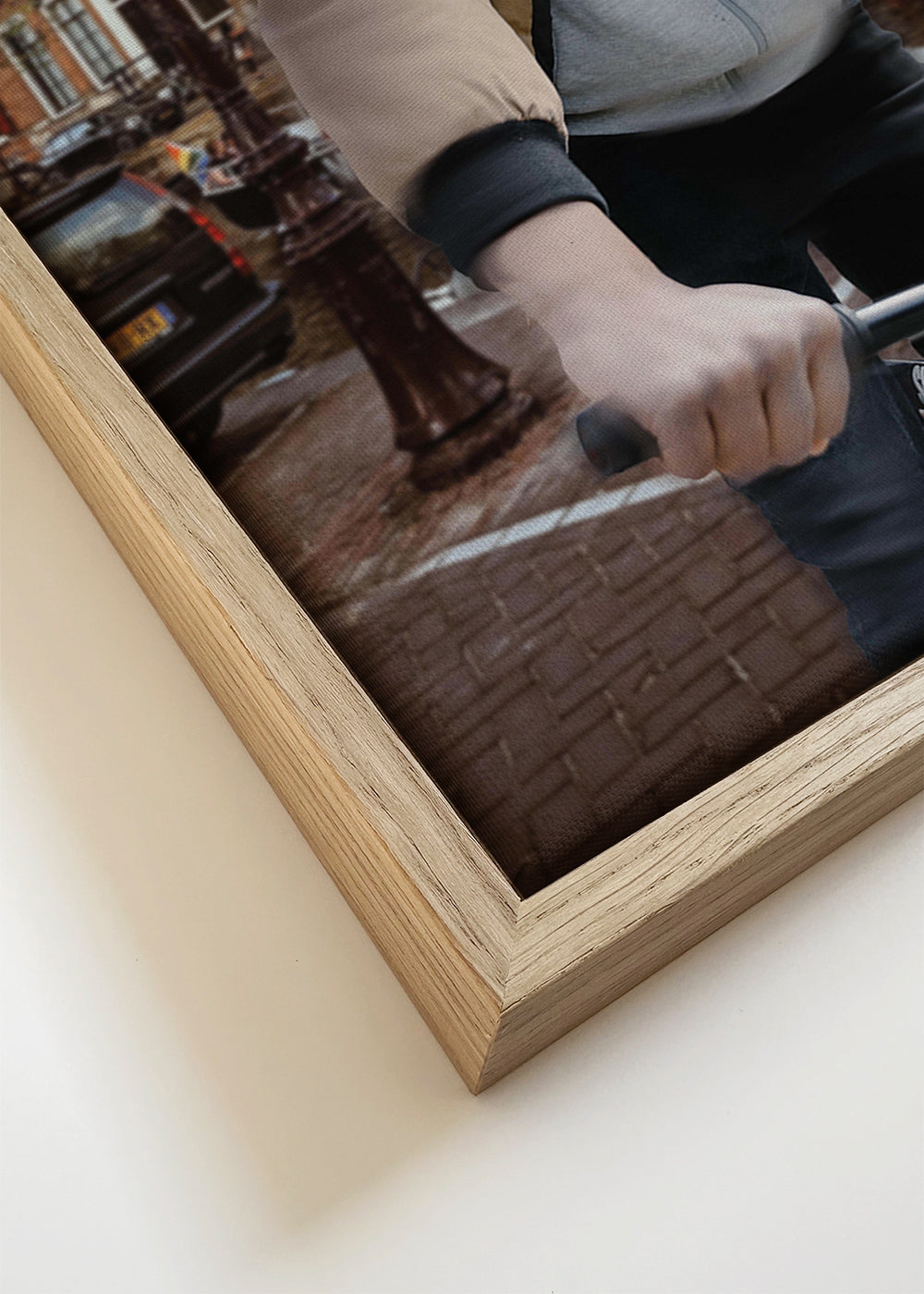 Wir arbeiten mit Massivholz- und Aluminiumrahmen. Alle gerahmten Produkte werden bereits montiert und fertig zum Aufhängen geliefert. Die Frontabdeckung besteht aus transparentem Acrylglas.