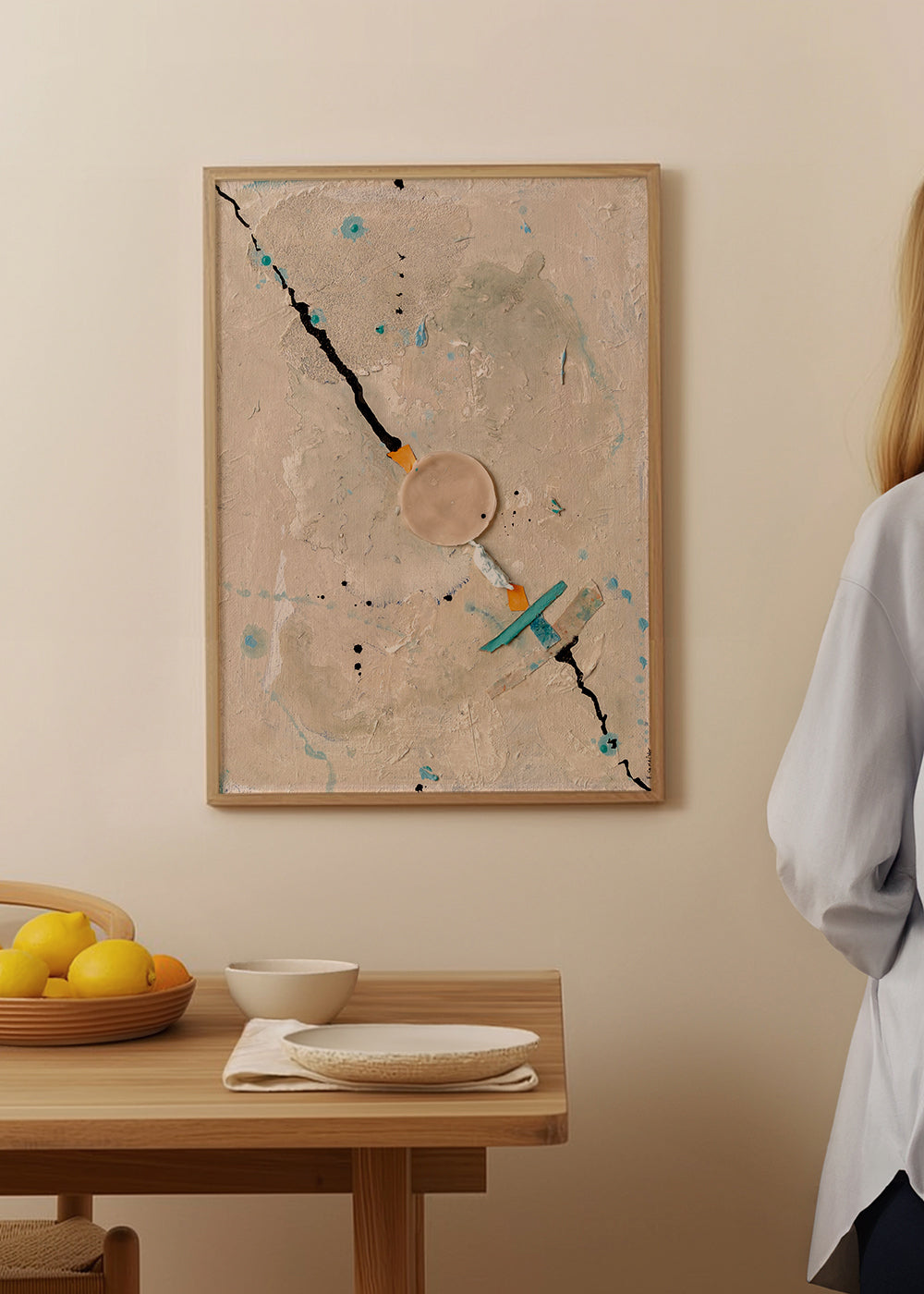 Das Passepartout ist eine weiße, matte Pappe, die das Poster umgibt, um es vor Methacrylat zu schützen, und die auch die Ausdruckskraft der Arbeit verstärkt und Details hervorhebt.