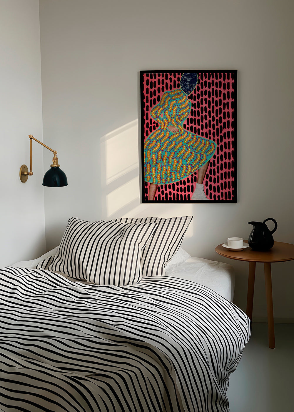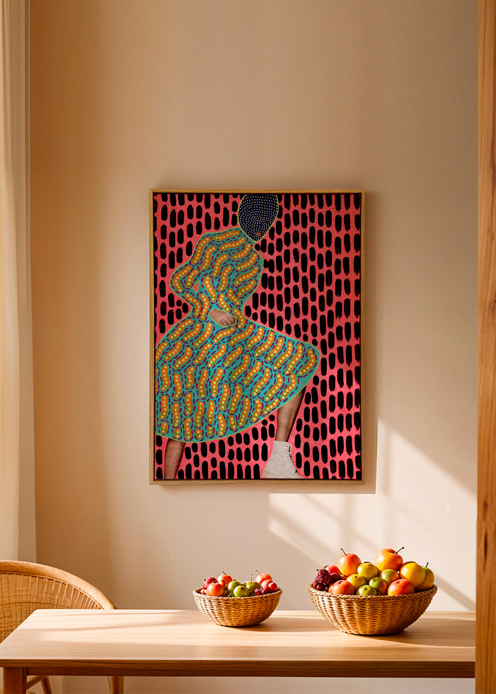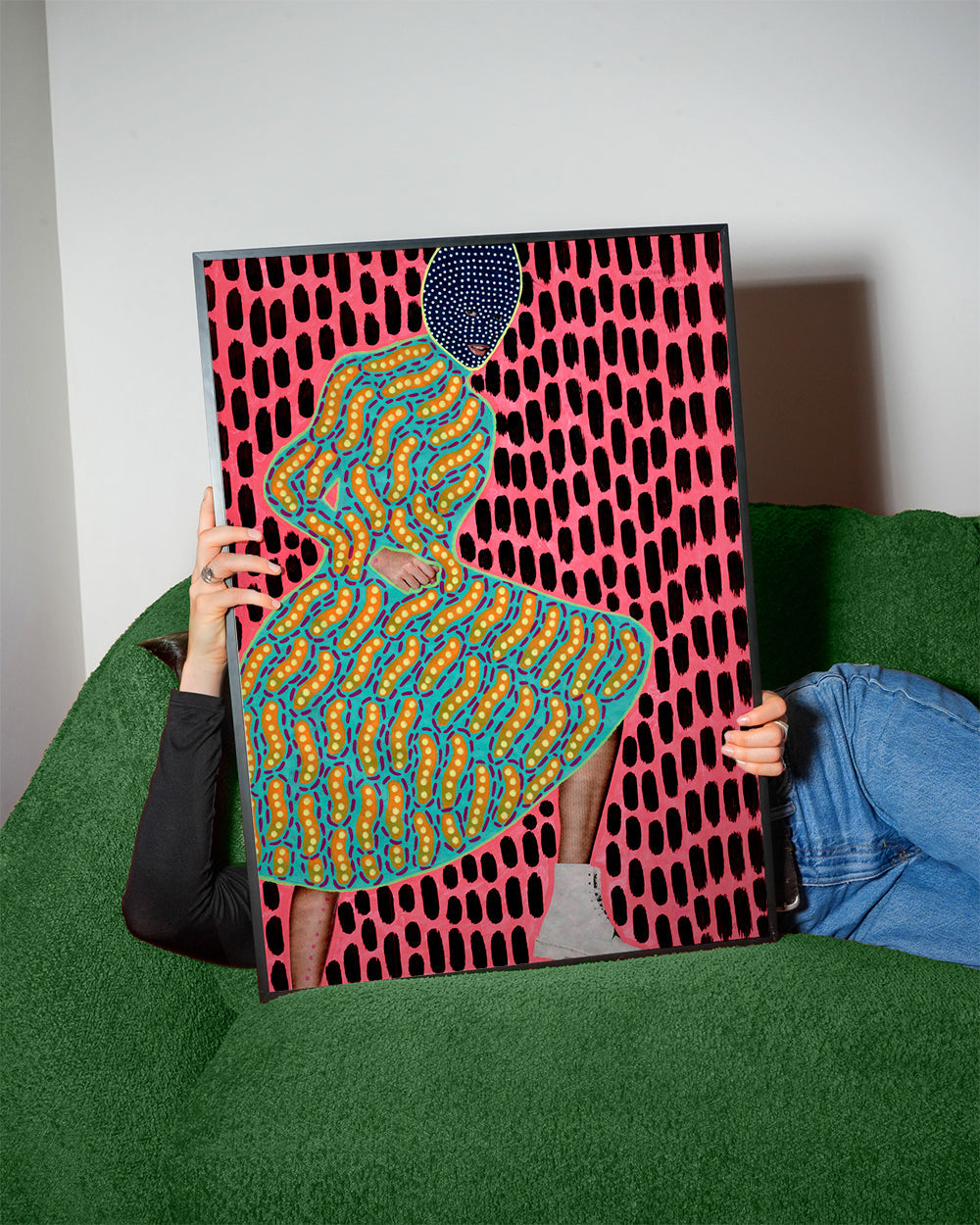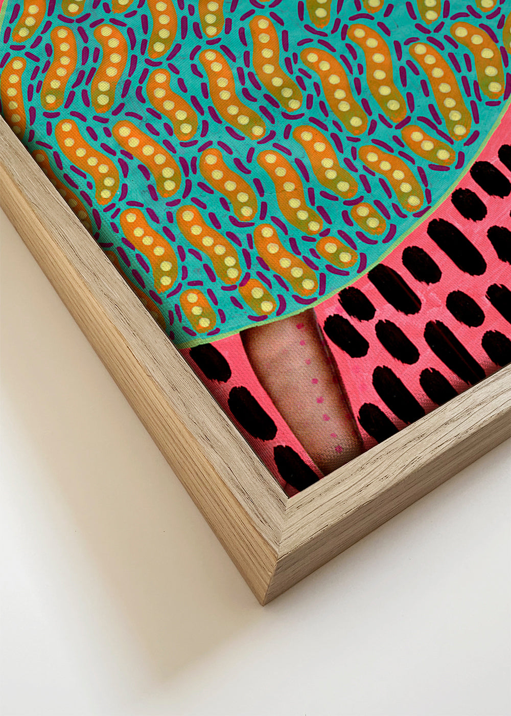 Das Passepartout ist eine weiße, matte Pappe, die das Poster umgibt, um es vor Methacrylat zu schützen, und die auch die Ausdruckskraft der Arbeit verstärkt und Details hervorhebt.