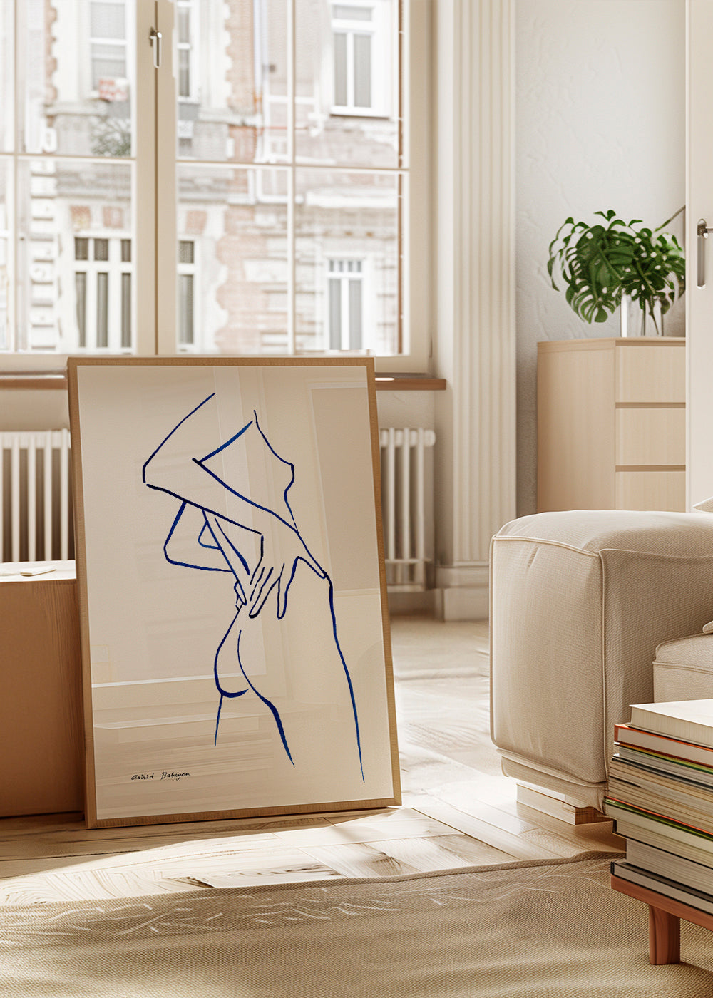 Ein Poster Im Stil unserer line-art-bilder, Originalbild von Astrid Babayan, mit Schattierungen Blau, und mit Ausrichtung Vertikal. Wandbilder mit Illustrationen lassen sich gut mit Kunst im minimalistischen und abstrakten Stil kombinieren. Die Details machen den Unterschied.