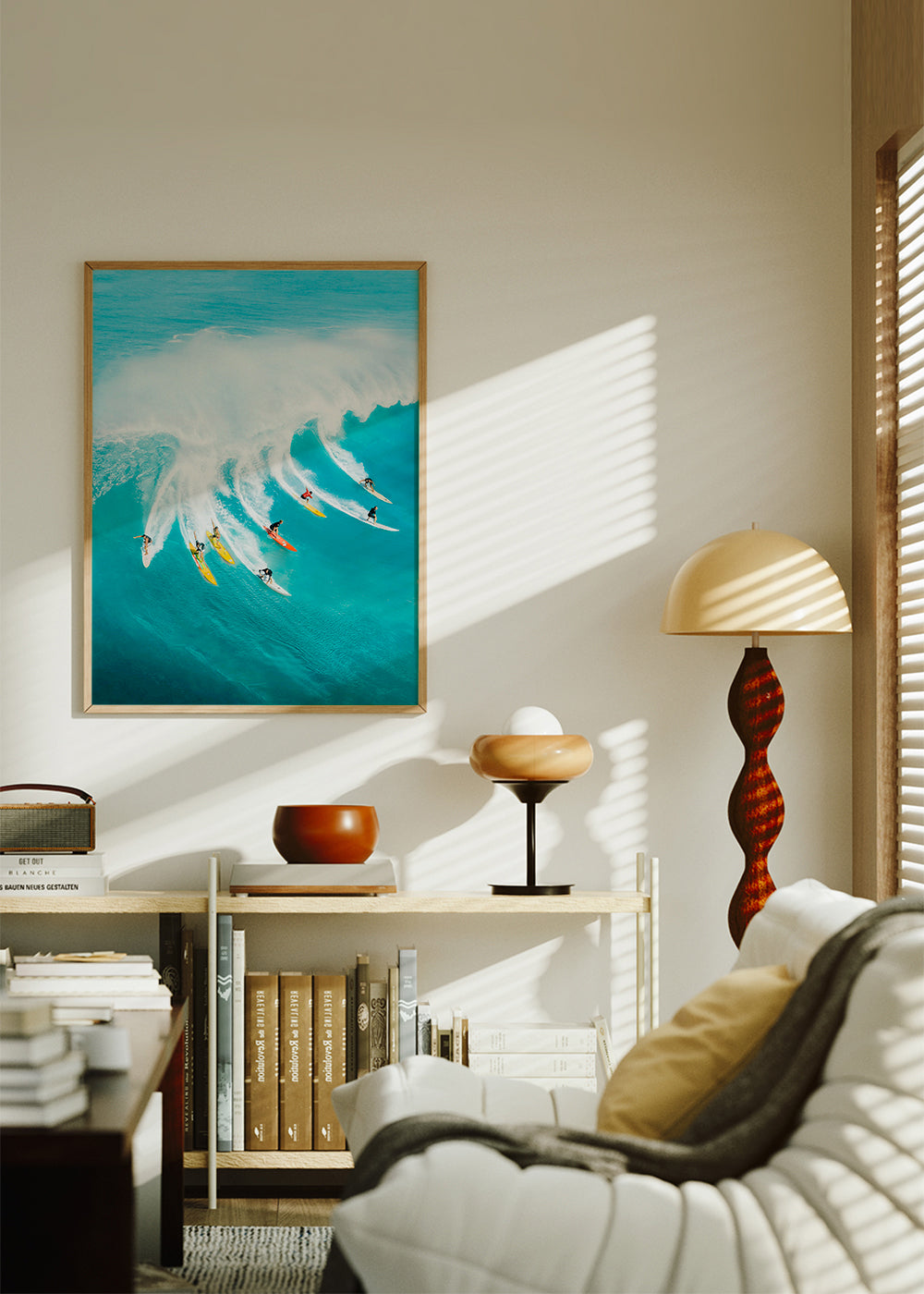 Ein Wandbild aus unserer Themengruppe surf-poster und wandbilder , Originalbild von Gal Design, mit Farbtönen blau, und im Format vertikal. Teilst du auch unsere Meinung, dass die Natur eine der schönsten Kunstwerke der Welt ist? Kombiniere verschiedenartige Landschaftsbilder, die besonders gut zur Geltung kommen und Frische verleihen. Ein moderner Touch für deine Wohnung.