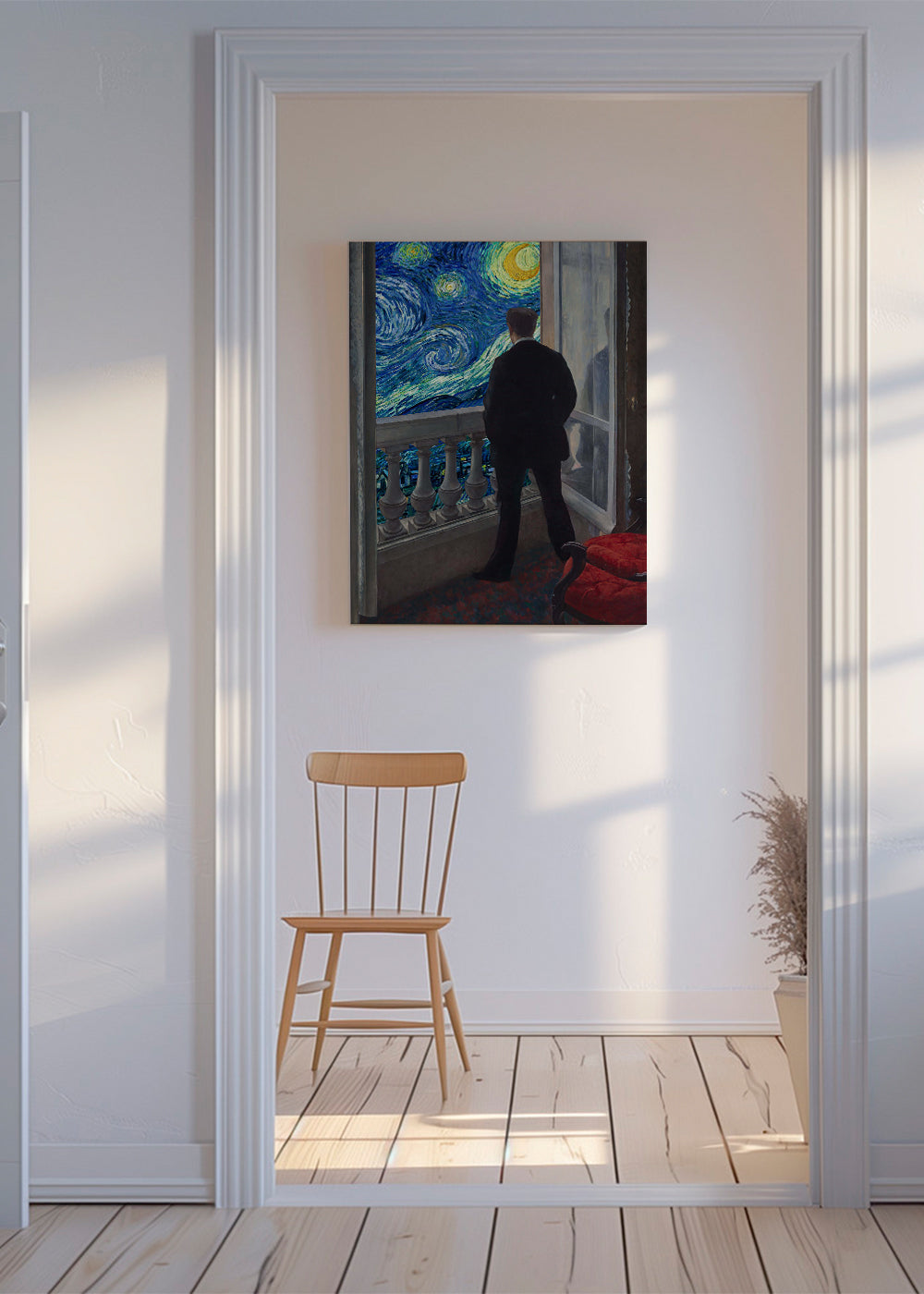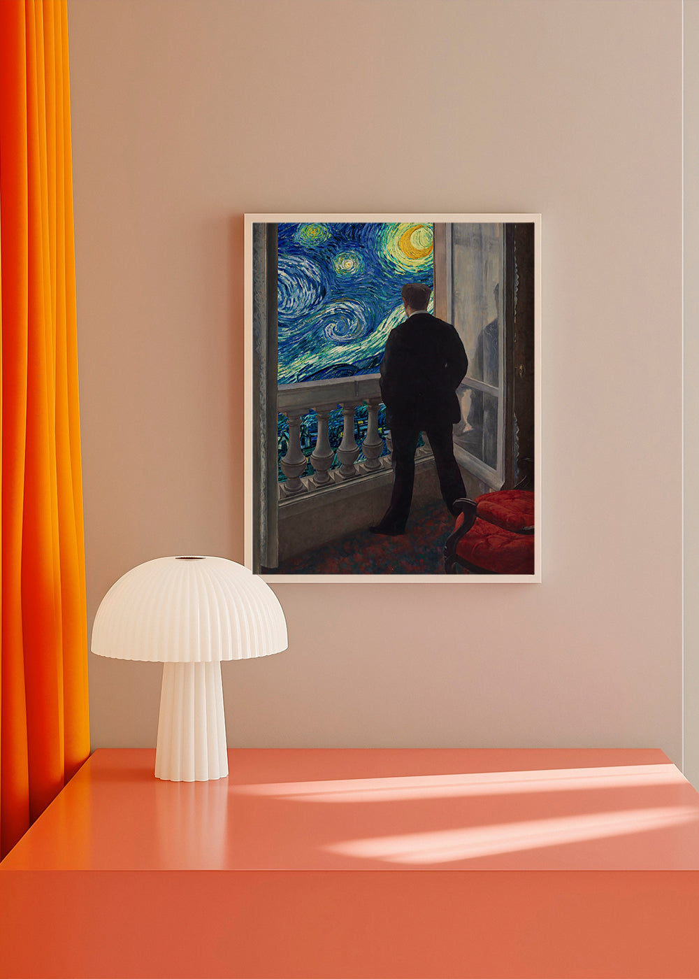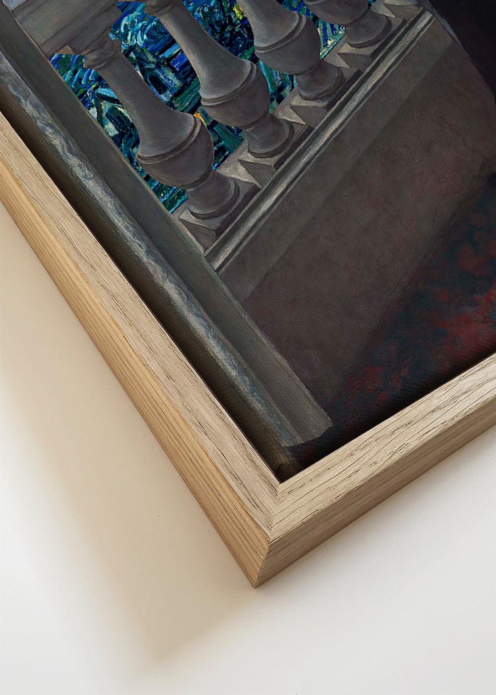 Wenn Sie die Passepartout-Option wählen, fügen wir die weiße matte Platte dem Rahmen hinzu und reduzieren das Design der Arbeit. Wählen Sie beispielsweise ein Druckformat 50x70 cm, mit eichenfarbenem Rahmen und Passepartout, reduzieren wir das Design des Druckes auf das bisherige Format (40x50cm). So passt es sich perfekt an das Innenfenster des Passepartouts an.