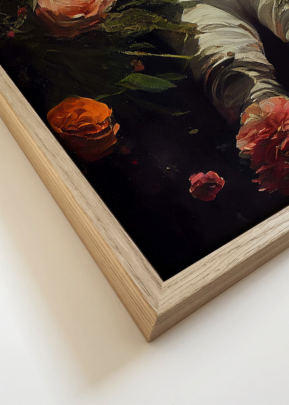 Wenn Sie die Passepartout-Option wählen, fügen wir die weiße matte Platte dem Rahmen hinzu und reduzieren das Design der Arbeit. Wählen Sie beispielsweise ein Druckformat 50x70 cm, mit eichenfarbenem Rahmen und Passepartout, reduzieren wir das Design des Druckes auf das bisherige Format (40x50cm). So passt es sich perfekt an das Innenfenster des Passepartouts an.