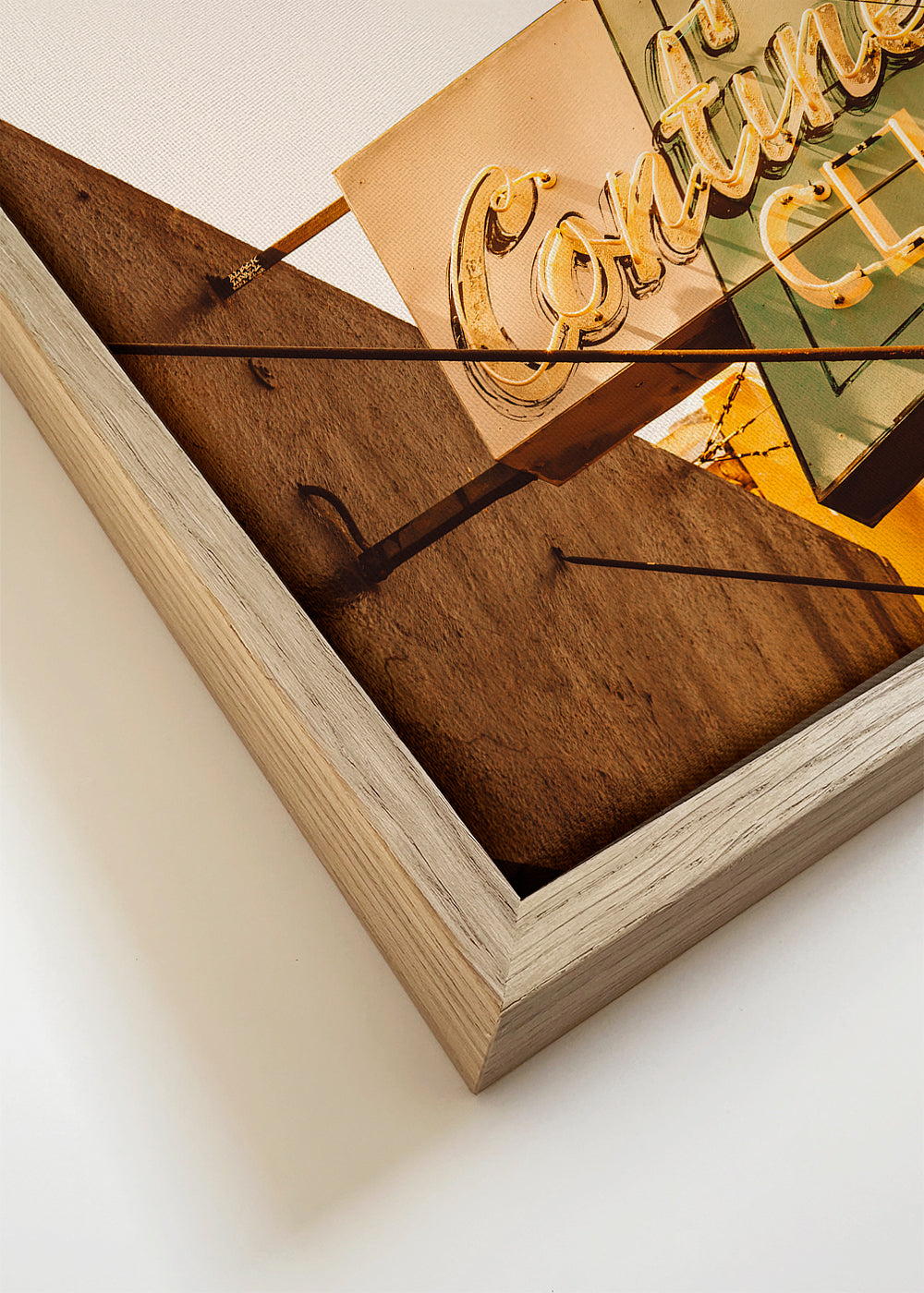 Wenn Sie die Passepartout-Option wählen, fügen wir die weiße matte Platte dem Rahmen hinzu und reduzieren das Design der Arbeit. Wählen Sie beispielsweise ein Druckformat 50x70 cm, mit eichenfarbenem Rahmen und Passepartout, reduzieren wir das Design des Druckes auf das bisherige Format (40x50cm). So passt es sich perfekt an das Innenfenster des Passepartouts an.