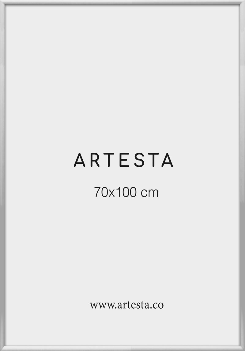 Bilderrahmen Silber in der Größe 60x90cm. Tiefe von 1,8 cm und Dicke von 0,7 cm. Alle unsere Fassungen haben eingebautes leichtes, bruchsicheres Acrylglas.