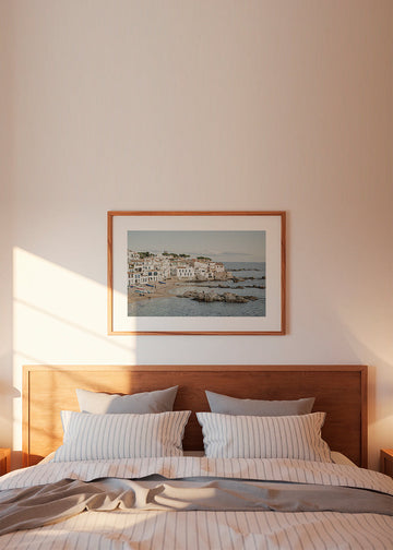 Wenn Sie die Passepartout-Option wählen, fügen wir die weiße matte Platte dem Rahmen hinzu und reduzieren das Design der Arbeit. Wählen Sie beispielsweise ein Druckformat 50x70 cm, mit eichenfarbenem Rahmen und Passepartout, reduzieren wir das Design des Druckes auf das bisherige Format (40x50cm). So passt es sich perfekt an das Innenfenster des Passepartouts an.