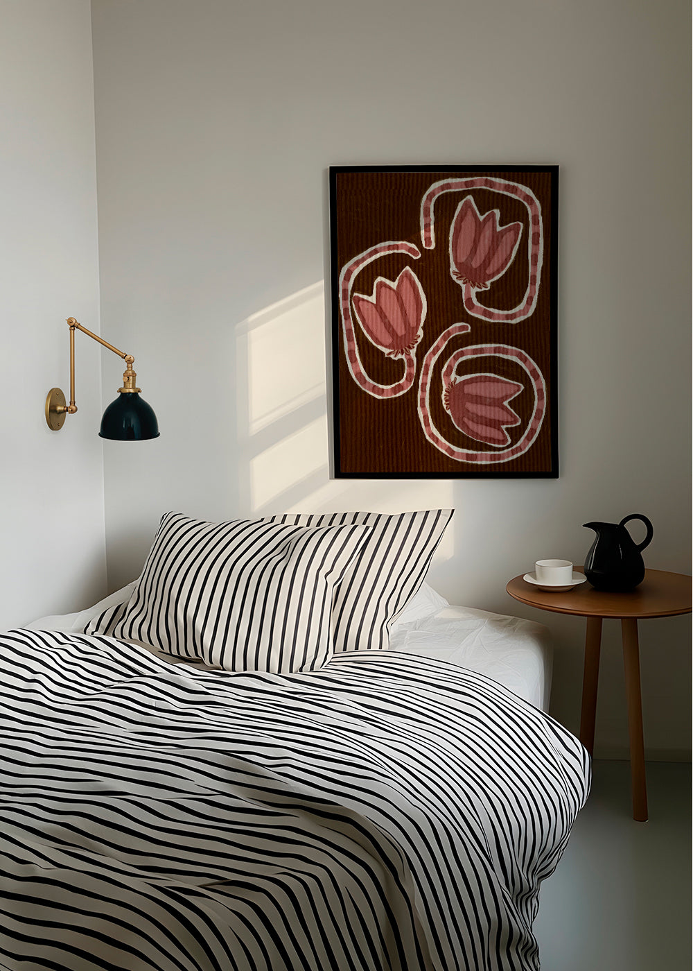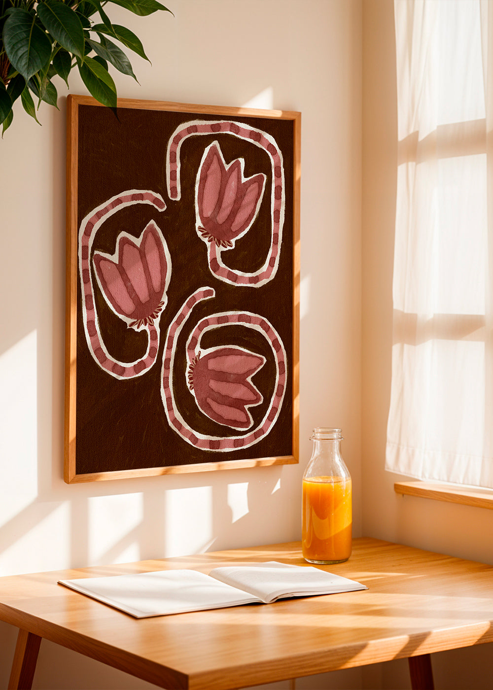Strich mit Seele. Schöner druck Inspiriert von der Kreativität von Shatha Dafai. Mit brauntöne farbtönen gefertigt in vertikal ausrichtung. Es ist eine schlichte zeichnung mit sauberer linienführung – kombiniere sie mit anderen strich- und linienzeichnungen für eine künstlerische bilderwand. Bringe leben an deine wände