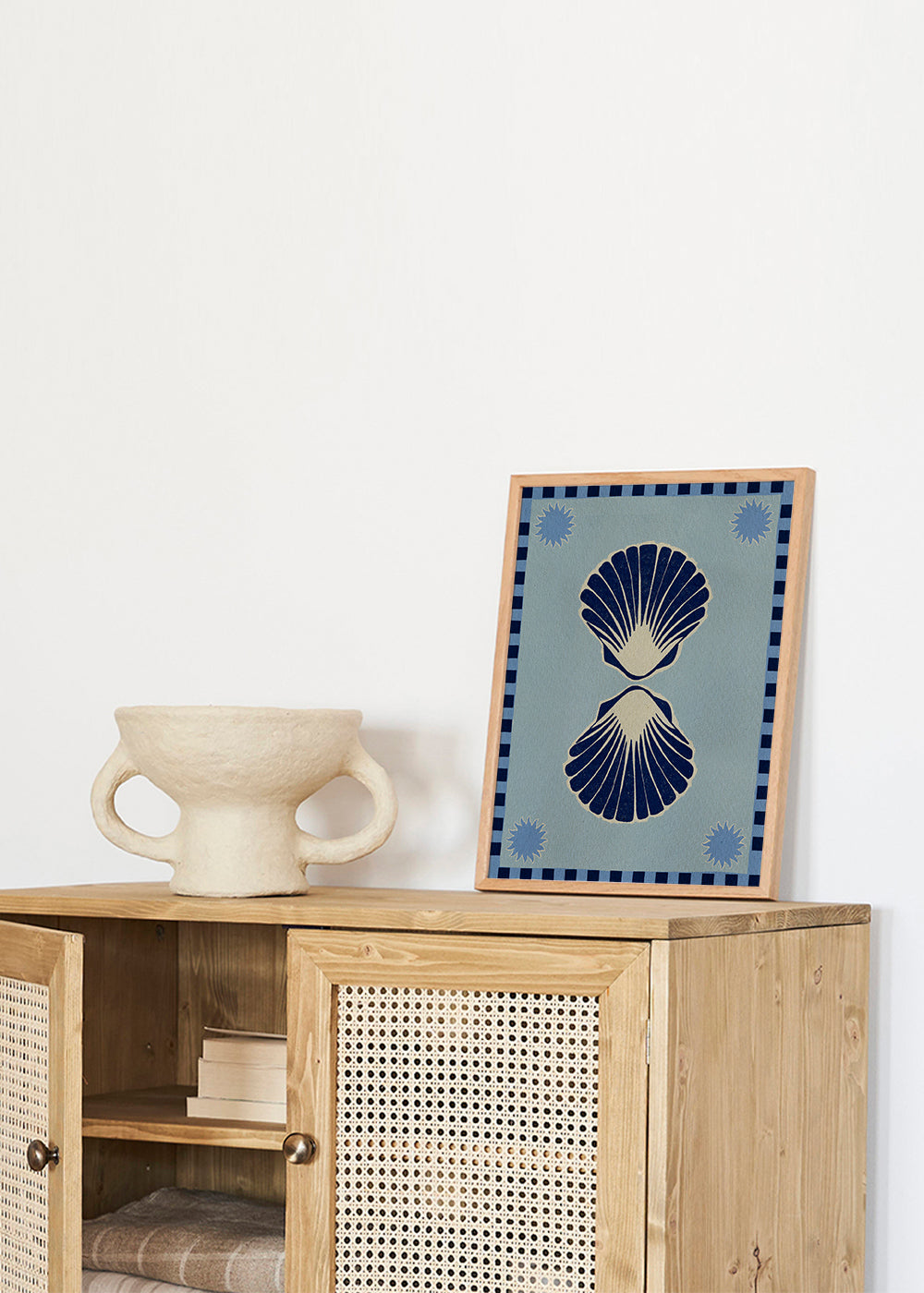 Strich mit Seele. Schöner druck Entworfen von Shatha Dafai. In atemberaubenden blaue tönen mit einem vertikal design. wandbilder mit zeichnungen und skizzen verleihen jeder inneneinrichtung einen originellen touch. Verwandle deine langweiligen wände