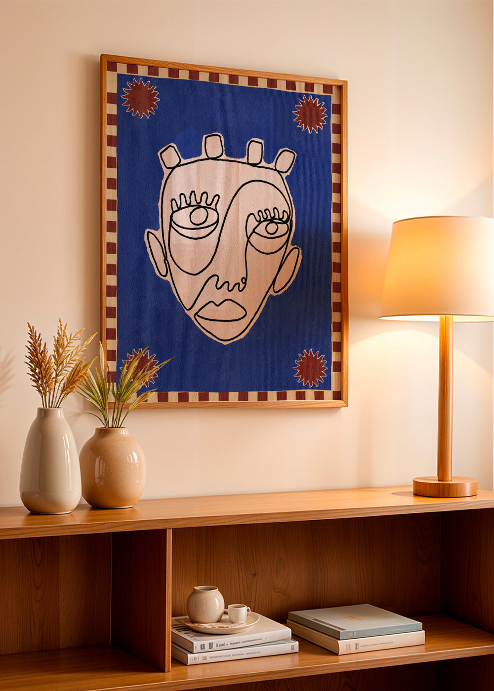 Charaktere mit Geschichte. Charmante zeichnung Ein Meisterwerk von Shatha Dafai. Reich an rote akzenten perfekte vertikal komposition. wandbilder mit zeichnungen und skizzen verleihen jeder inneneinrichtung einen originellen touch. Lass deine wände herausstechen