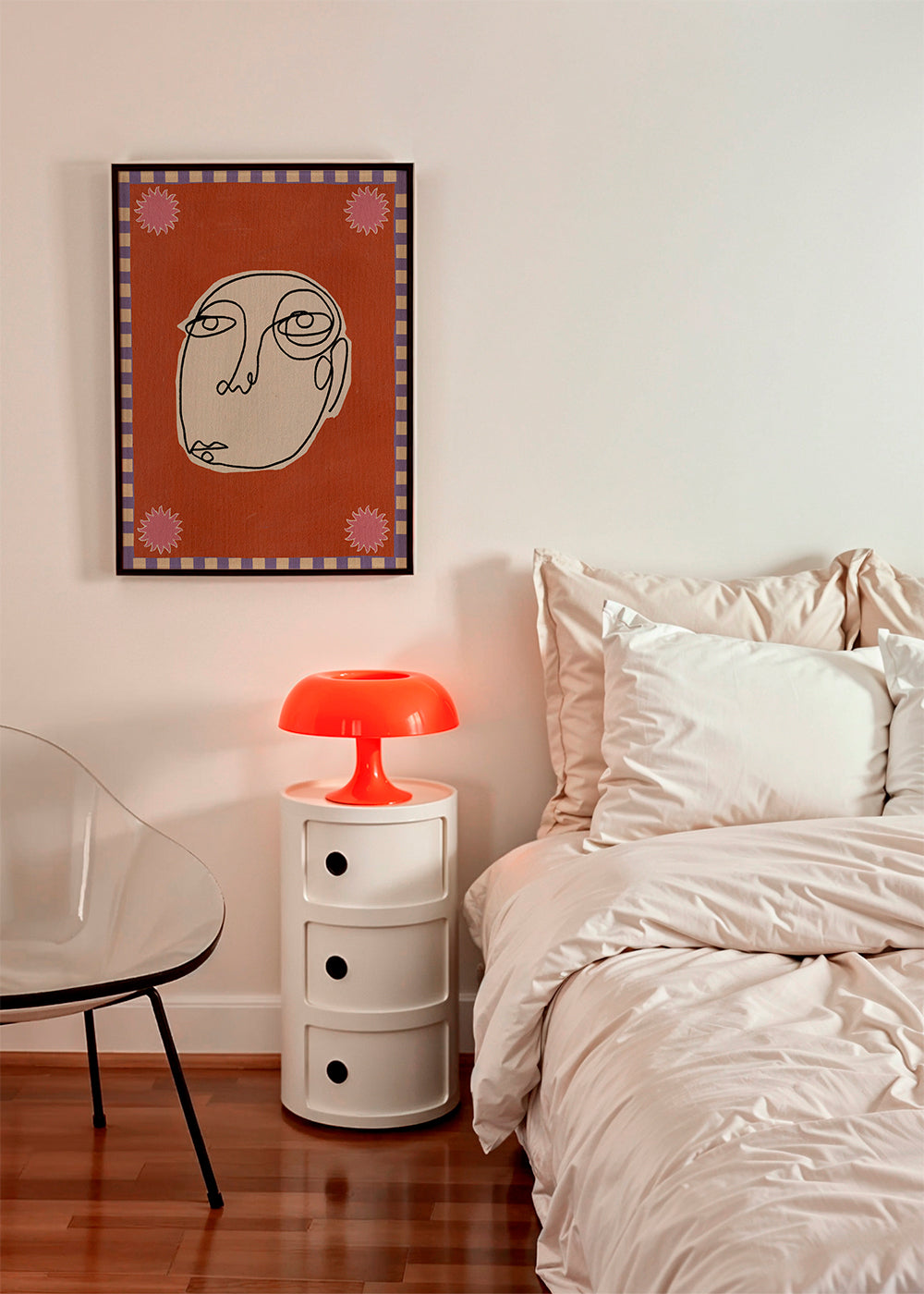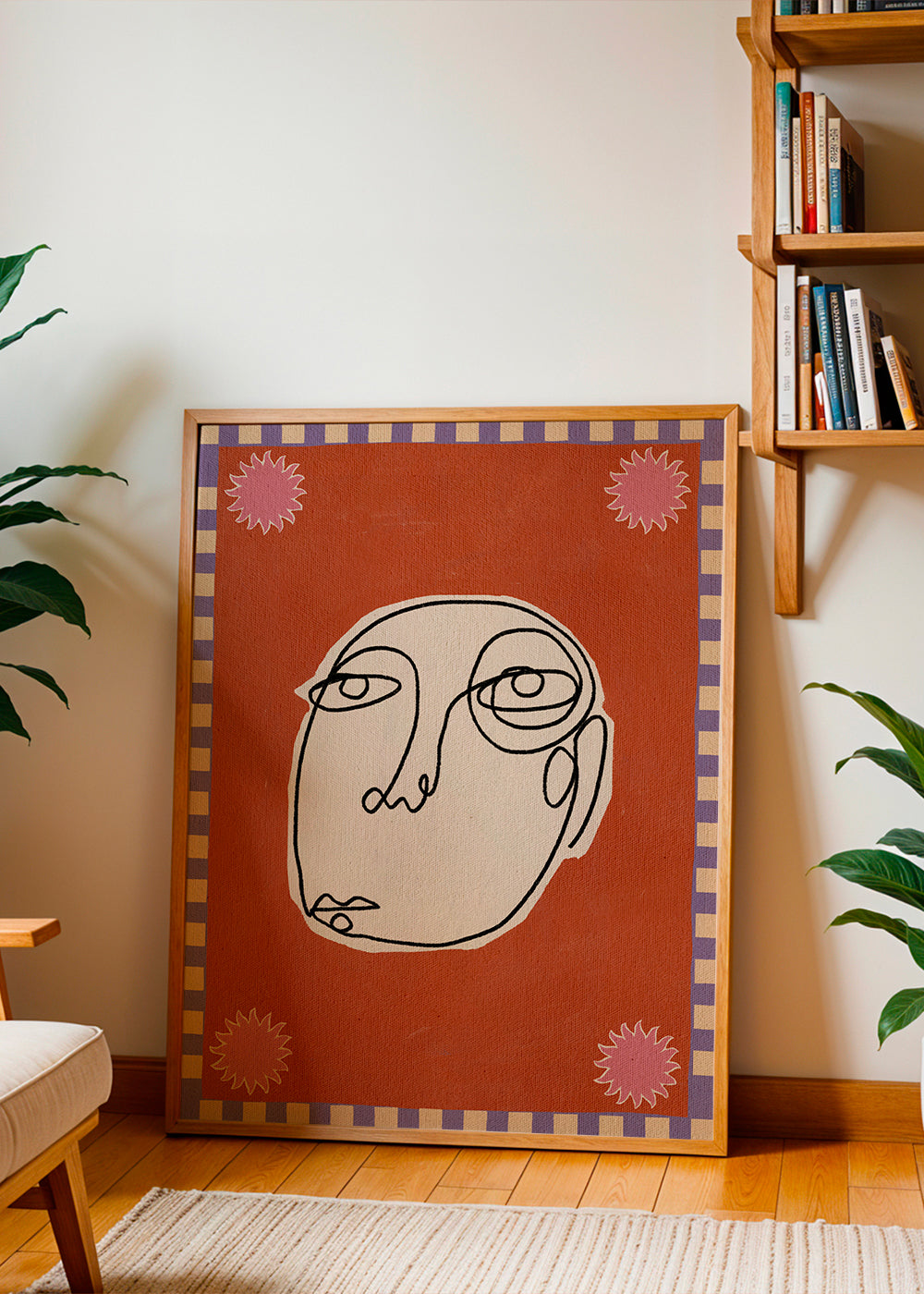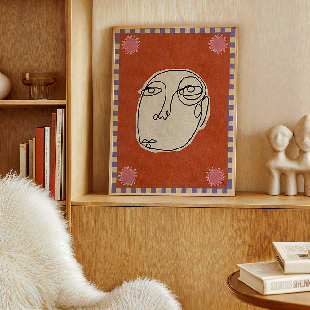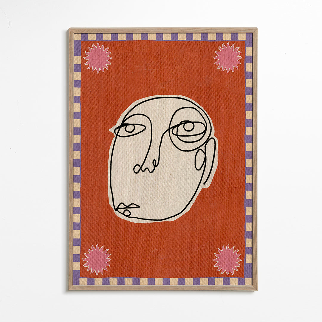 Charaktere mit Geschichte. Charmante zeichnung Inspiriert von der Kreativität von Shatha Dafai. Mit rote farbtönen mit einem vertikal layout. Das wandbild ist ideal für wohnbereiche mit künstlerischem und kreativem flair unsere poster mit zeichnungen und illustrationen sind ideal um leere, langweilige wände zu dekorieren. Lass deine wände herausstechen