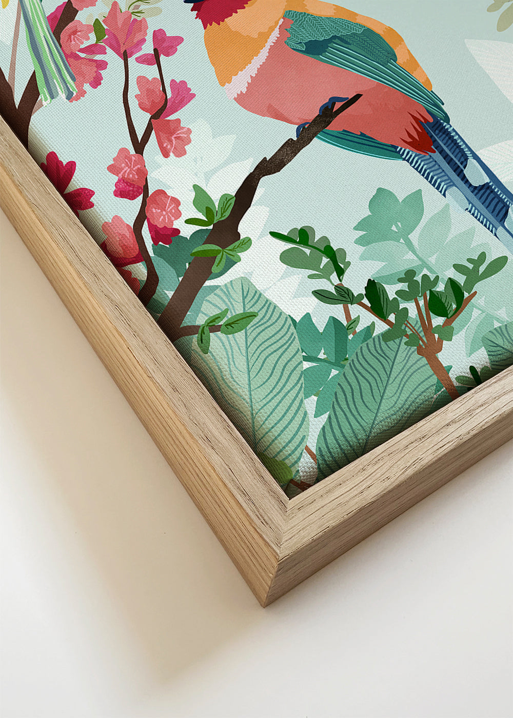 Alle unsere Rahmen werden in Spanien hergestellt. Die weißen, schwarzen und Eichenrahmen sind aus Ayous-Holz gefertigt, und die Eichenrahmen sind mit Eiche furniert, während die metallischen Rahmen aus Aluminium sind.