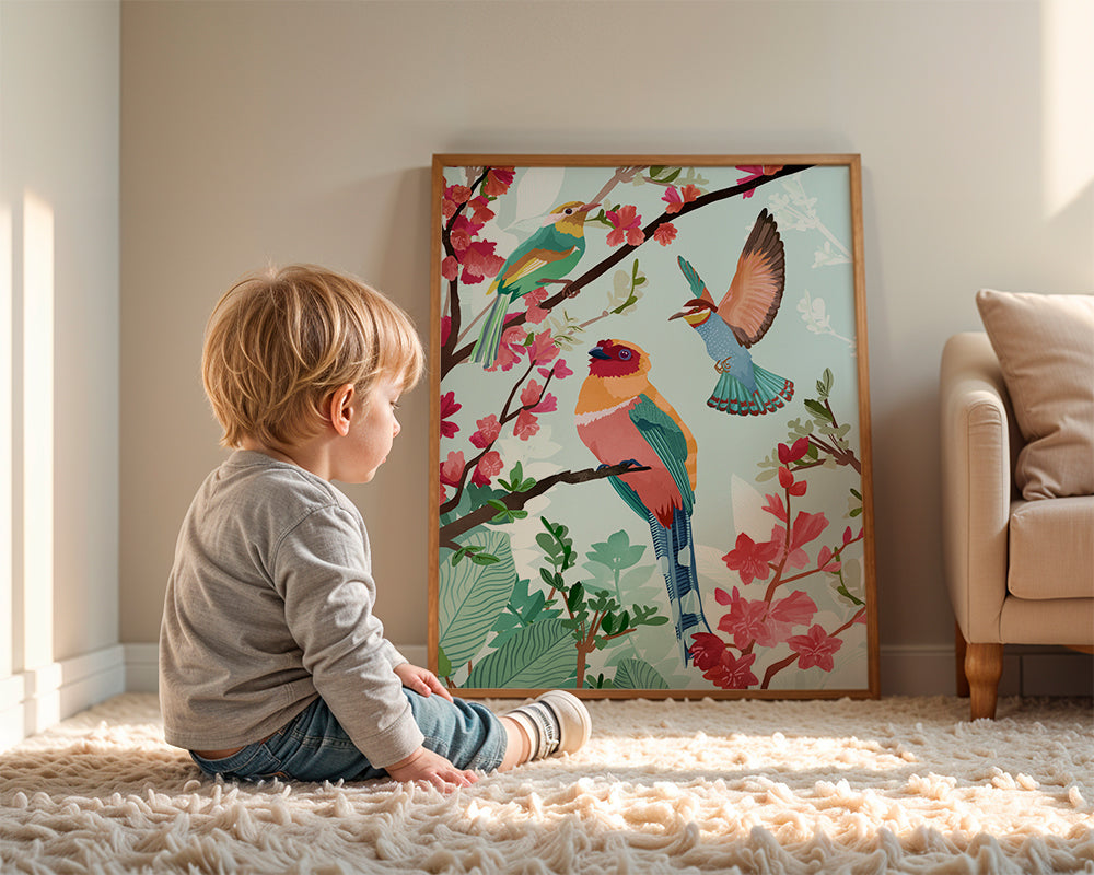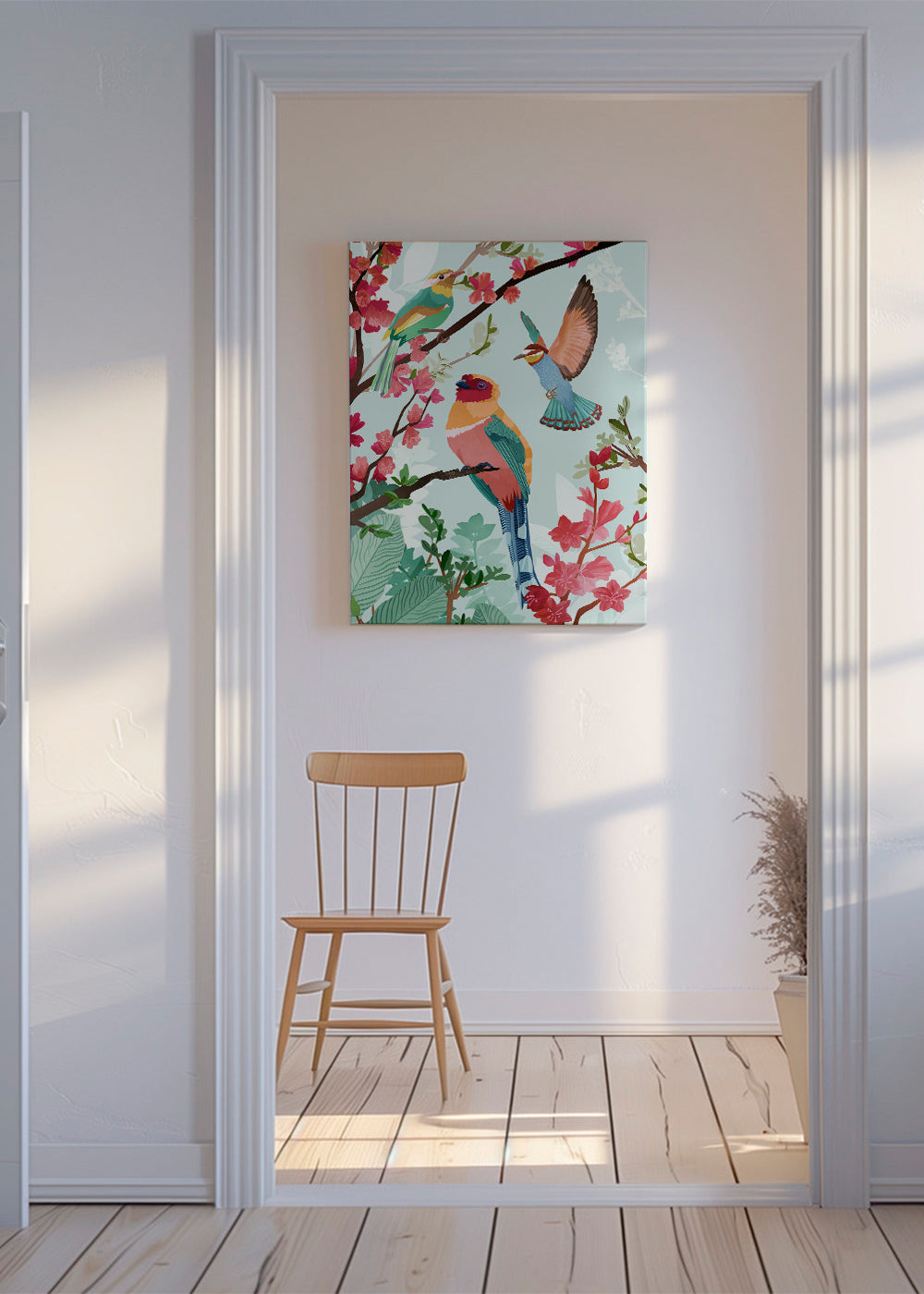 Ein Kunstdruck gehört zum Thema vogelarten-bilder und poster, Künstlern Goed Blauw, mit Schattierungen Mehrfarbig, und geeignet für Bildpositionen Vertikal. Wandbilder mit Tiermotiven sind ideal, um unsere Verbundenheit mit der Natur an unseren Wänden auszudrücken. Eine Wand mit Bildern kann den ganzen Raum verändern.