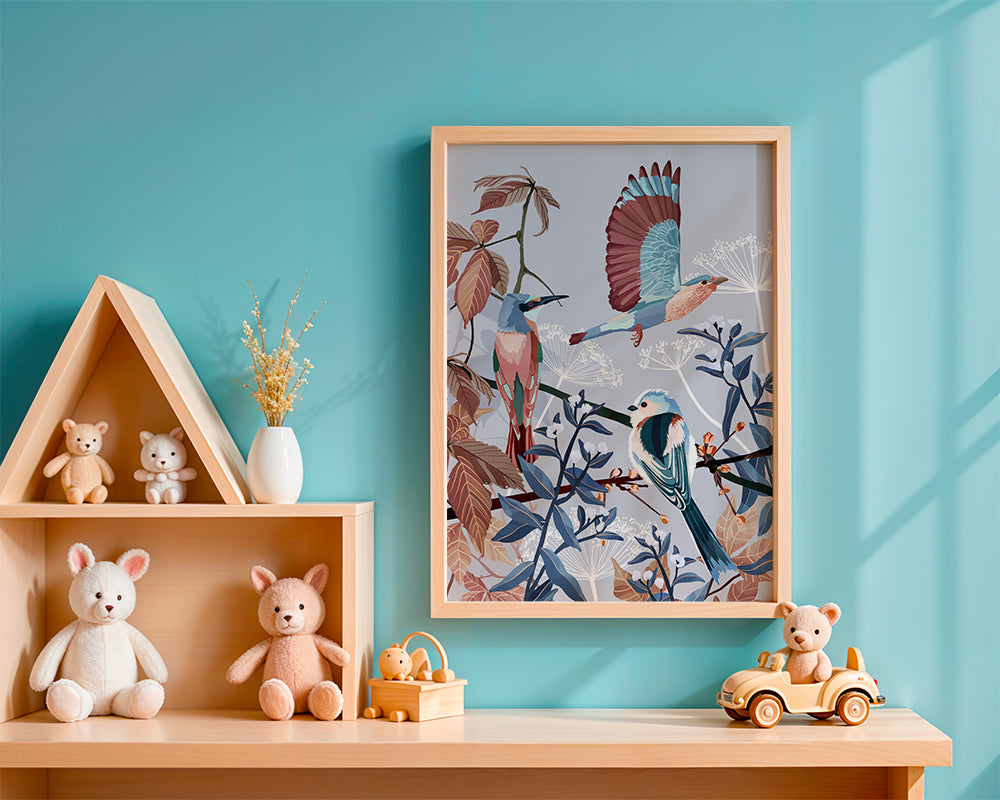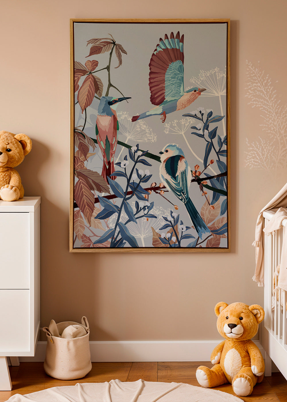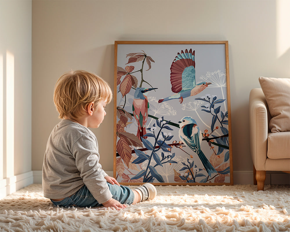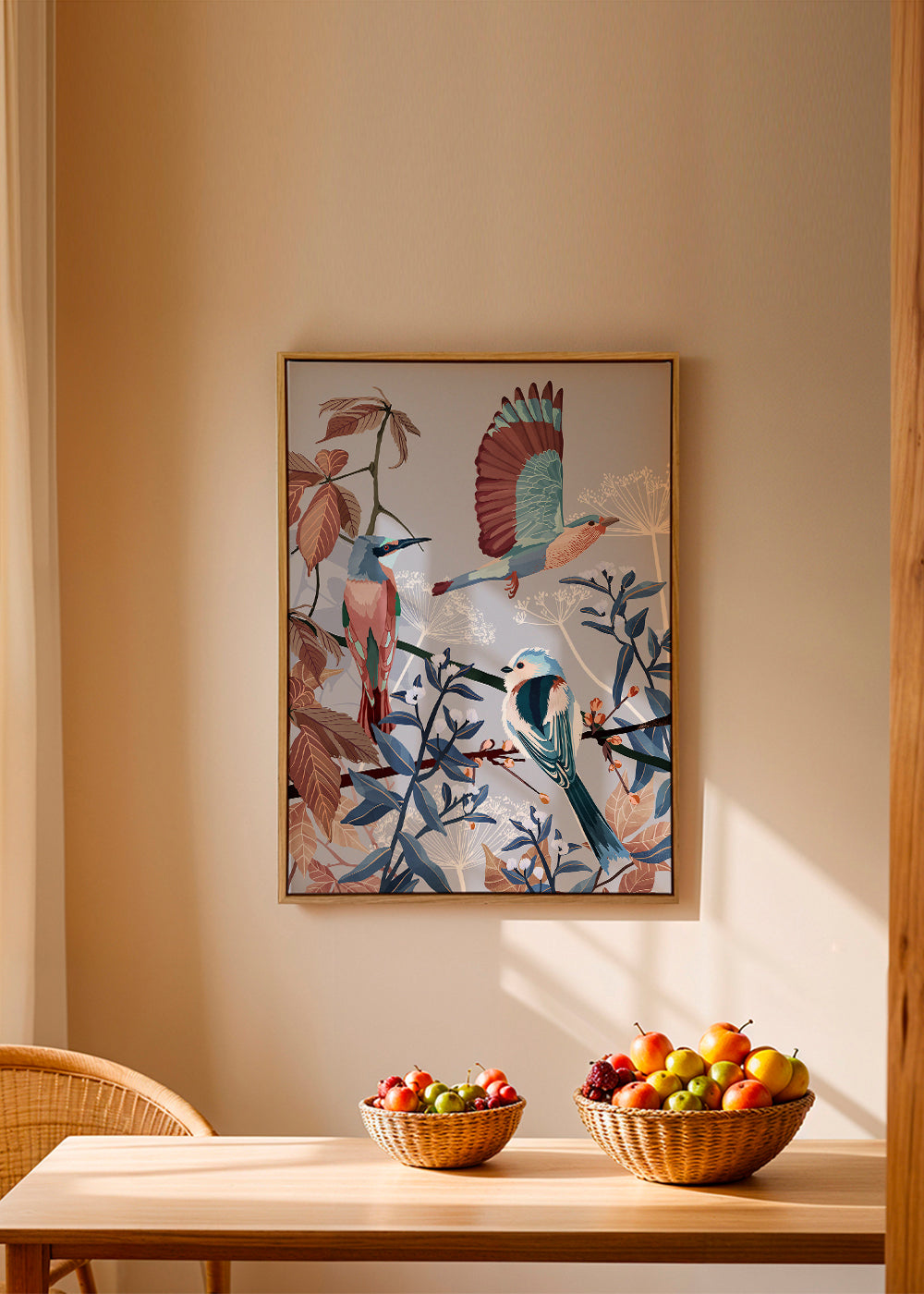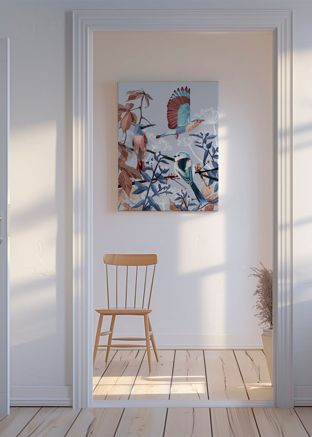 Ein Designs gehört zum Thema vogelarten-bilder und poster, aus der Kollektion des Künstlers Goed Blauw, mit Pigmenten Blau, und im Format Vertikal. Wandbilder mit Tiermotiven sind ideal, um unsere Verbundenheit mit der Natur an unseren Wänden auszudrücken. Mache aus deiner Wand ein Bild für die Götter.