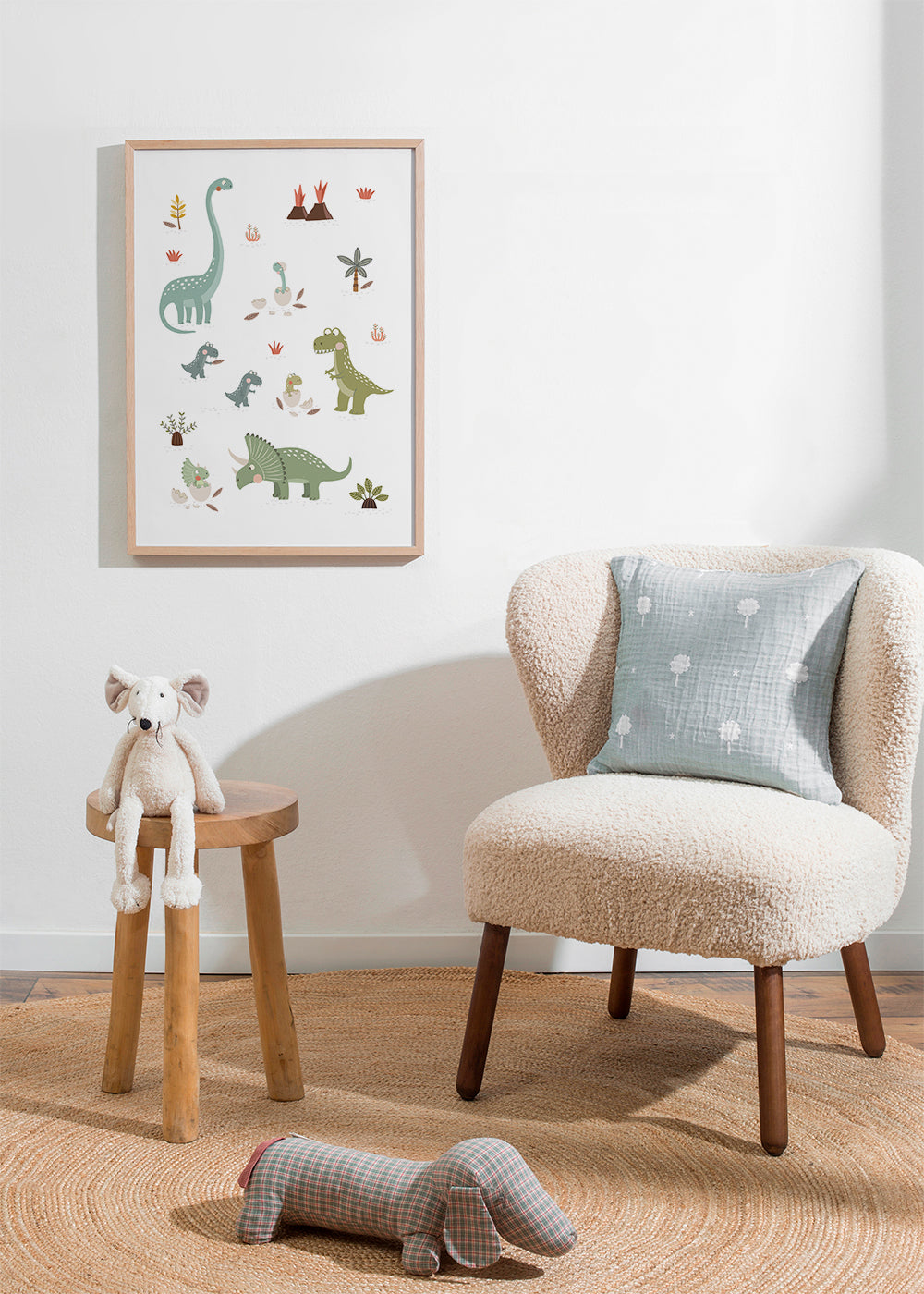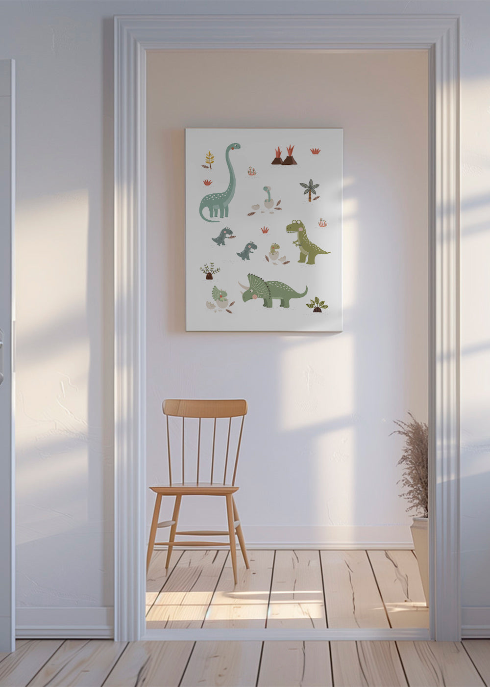 Ein Poster aus der Kollektion dino-poster, von Marta Munte, mit Pigmenten grün, und ideal für die Bildposition vertikal. Tierbilder versprühen Energie und sind perfekt für deine Wände. Gestalte deine Lieblingsecke.
