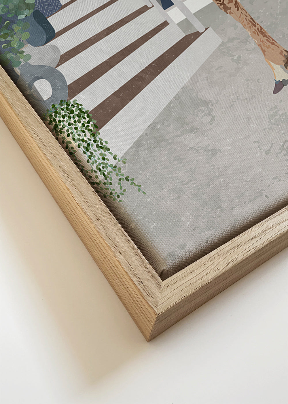 Wenn Sie die Passepartout-Option wählen, fügen wir die weiße matte Platte dem Rahmen hinzu und reduzieren das Design der Arbeit. Wählen Sie beispielsweise ein Druckformat 50x70 cm, mit eichenfarbenem Rahmen und Passepartout, reduzieren wir das Design des Druckes auf das bisherige Format (40x50cm). So passt es sich perfekt an das Innenfenster des Passepartouts an.