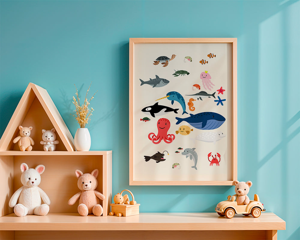 Alle unsere Rahmen werden in Spanien hergestellt. Die weißen, schwarzen und Eichenrahmen sind aus Ayous-Holz gefertigt, und die Eichenrahmen sind mit Eiche furniert, während die metallischen Rahmen aus Aluminium sind.