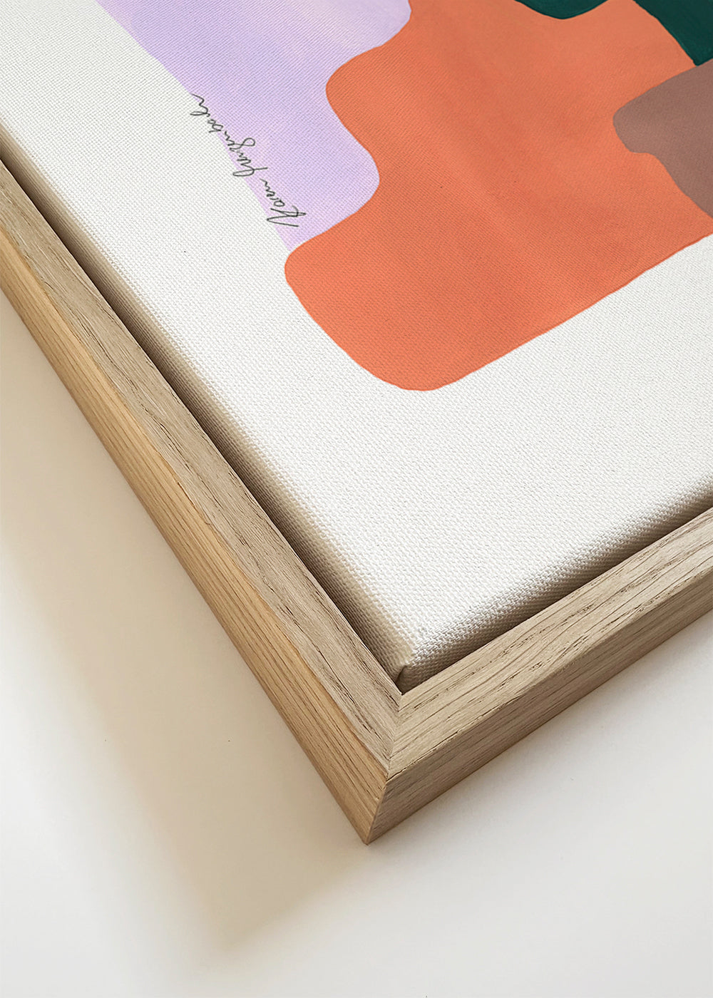 Alle unsere Rahmen werden in Spanien hergestellt. Die weißen, schwarzen und Eichenrahmen sind aus Ayous-Holz gefertigt, und die Eichenrahmen sind mit Eiche furniert, während die metallischen Rahmen aus Aluminium sind.
