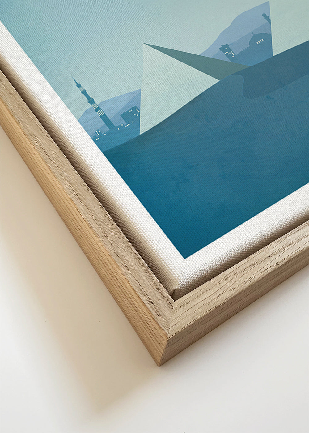 Wenn Sie die Passepartout-Option wählen, fügen wir die weiße matte Platte dem Rahmen hinzu und reduzieren das Design der Arbeit. Wählen Sie beispielsweise ein Druckformat 50x70 cm, mit eichenfarbenem Rahmen und Passepartout, reduzieren wir das Design des Druckes auf das bisherige Format (40x50cm). So passt es sich perfekt an das Innenfenster des Passepartouts an.