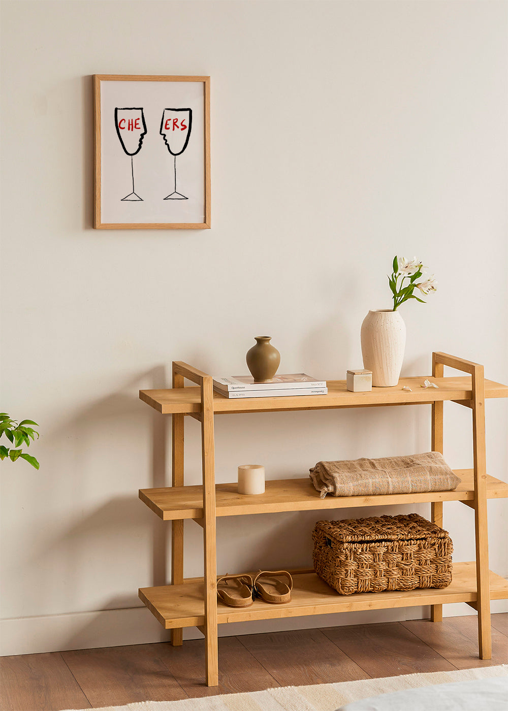 Alle unsere Rahmen werden in Spanien hergestellt. Die weißen, schwarzen und Eichenrahmen sind aus Ayous-Holz gefertigt, und die Eichenrahmen sind mit Eiche furniert, während die metallischen Rahmen aus Aluminium sind.