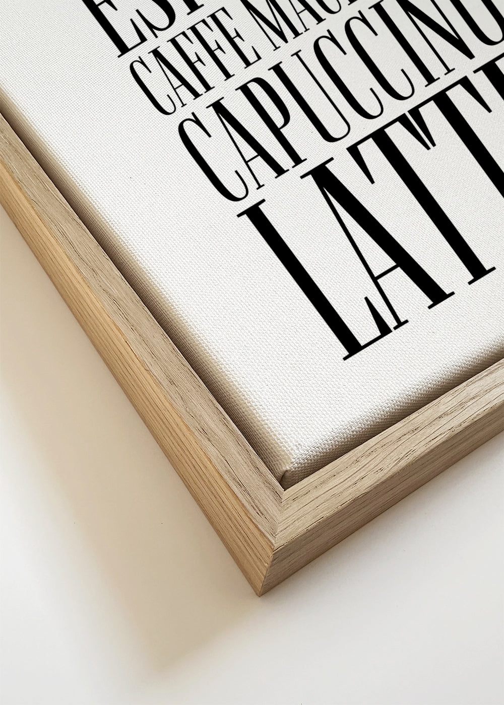 Alle unsere Rahmen werden in Spanien hergestellt. Die weißen, schwarzen und Eichenrahmen sind aus Ayous-Holz gefertigt, und die Eichenrahmen sind mit Eiche furniert, während die metallischen Rahmen aus Aluminium sind.