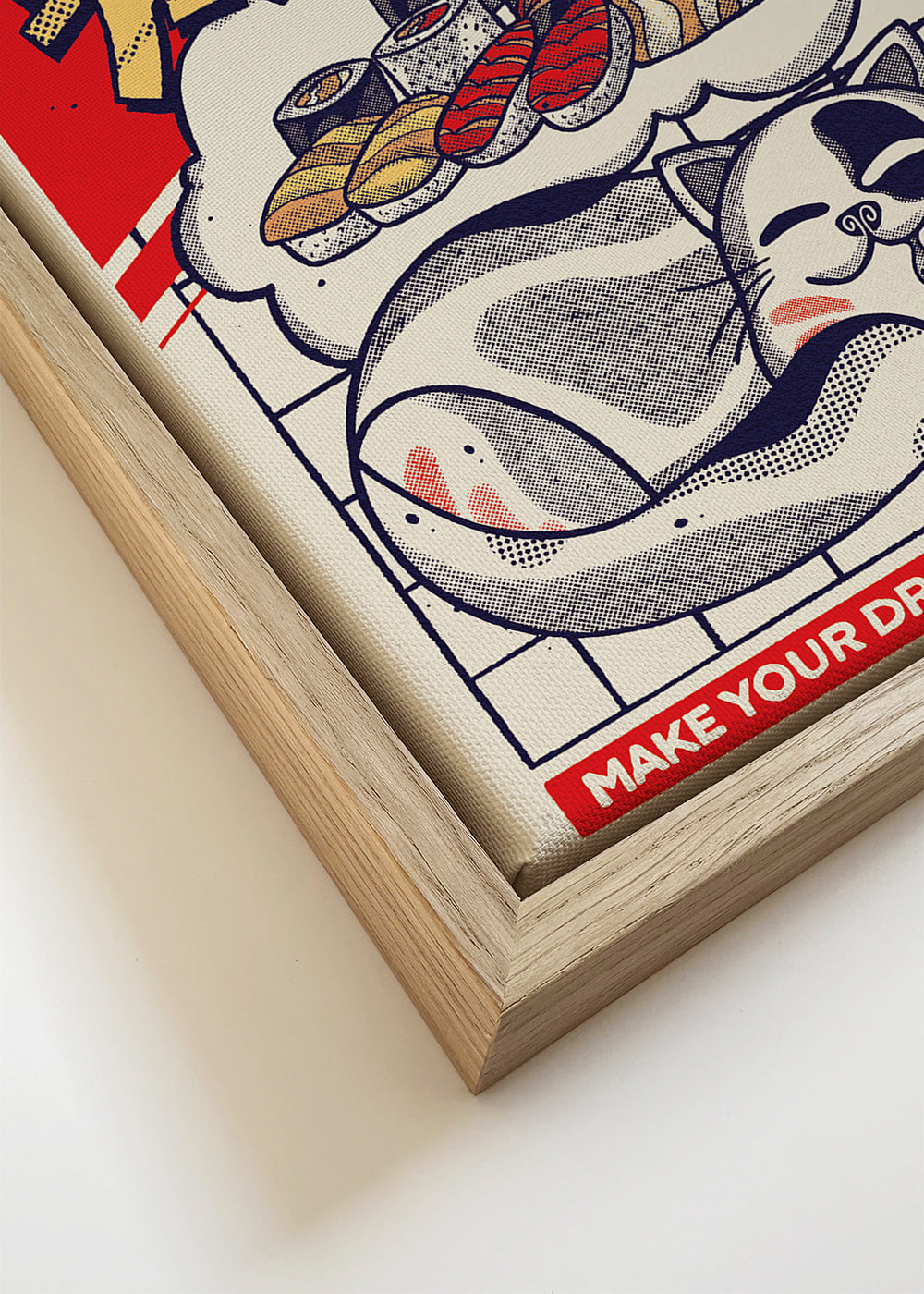 Jede Leinwand wird von Hand auf einen Holzspannrahmen gespannt. Die Tiefe beträgt 3 cm bei ungerahmten Leinwänden und 4 cm bei gerahmten Leinwänden.