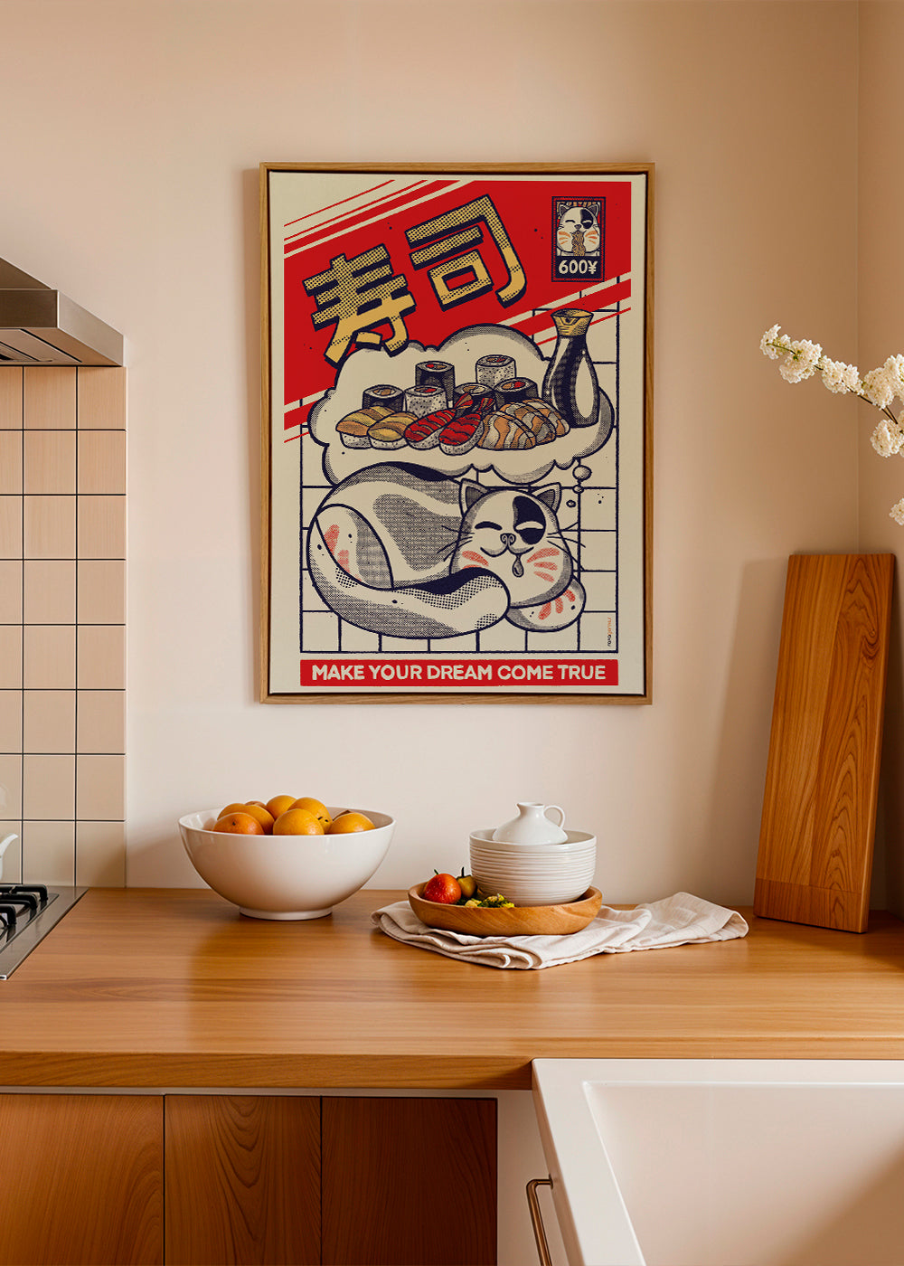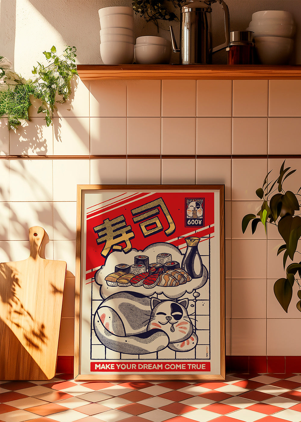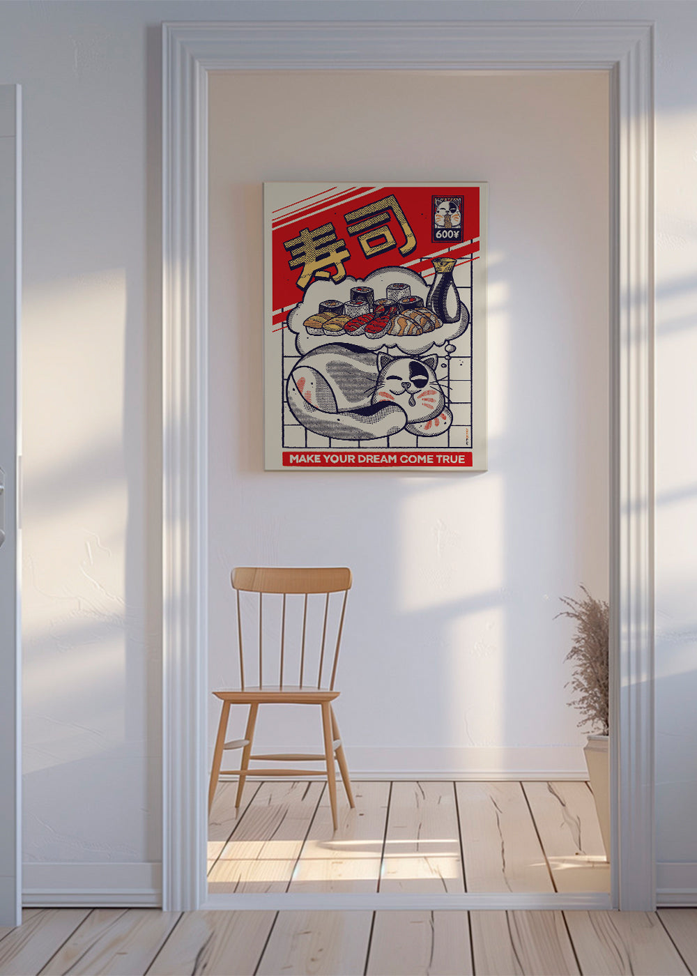 Ein Kunstwerk inspiriert durch die Kollektion von japan-bilder und poster, Originalbild von Rafa Gomes, mit Farben rot, und mit Ausrichtung vertikal. Verleihe deiner Inneneinrichtung mit diesem Wandbild im Retro-Style, in Kombination mit anderen, einen schönen Vintage-Touch. Kreative Einrichtungsideen und Design für deine Wohnung.