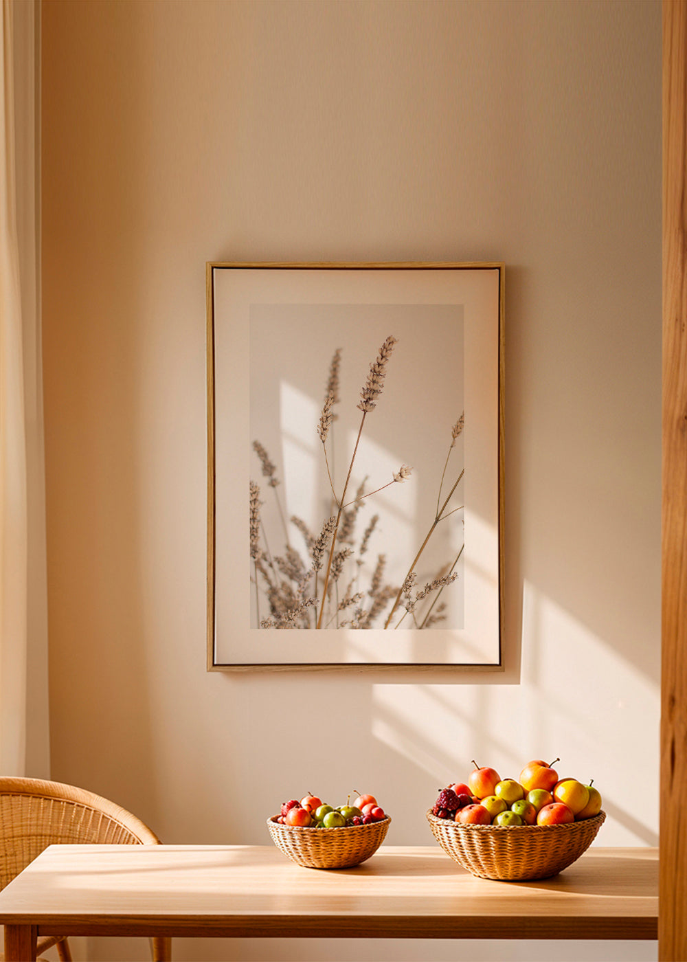 Wenn Sie die Passepartout-Option wählen, fügen wir die weiße matte Platte dem Rahmen hinzu und reduzieren das Design der Arbeit. Wählen Sie beispielsweise ein Druckformat 50x70 cm, mit eichenfarbenem Rahmen und Passepartout, reduzieren wir das Design des Druckes auf das bisherige Format (40x50cm). So passt es sich perfekt an das Innenfenster des Passepartouts an.